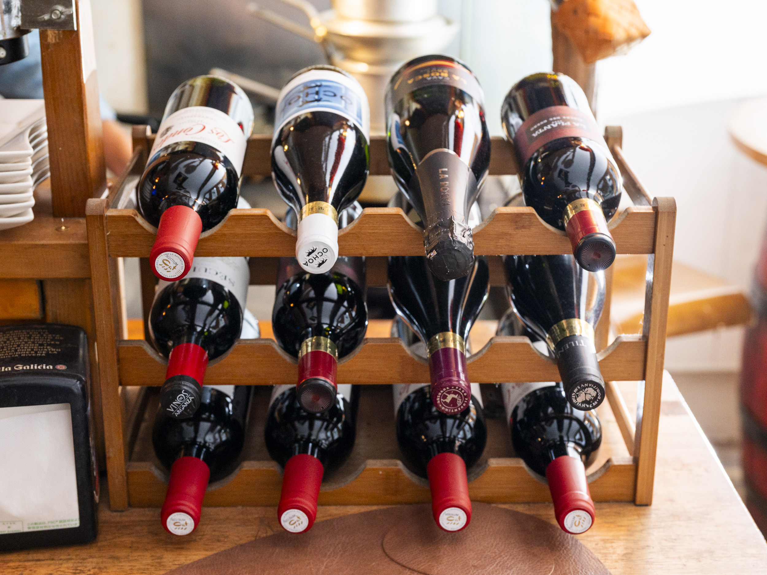 イカスミのパエリアは、赤ワインも白ワインも合うそう。注文時に相談すれば、20種類近いワインから選んでもらえます。価格は時価で、グラスワインで700円からあります。