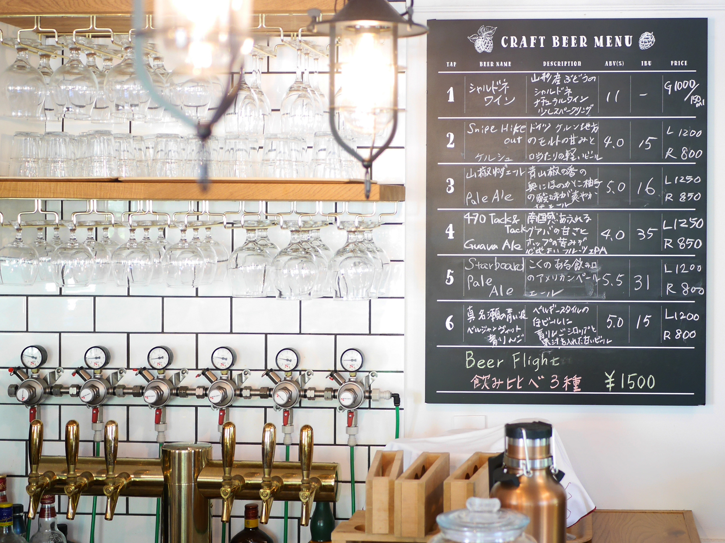 葉山の海を連想させる名前が印象的な「ブリュースターズヨットクラブ 葉山ブリューイング(Brewstars Yacht Club)」。フレッシュで個性豊かなクラフトビールを醸造するブルワリーに併設されたお店です。カウンターの奥に並ぶビールを注ぐタップやメニューボードが、訪れる人の心をわくわくさせます。