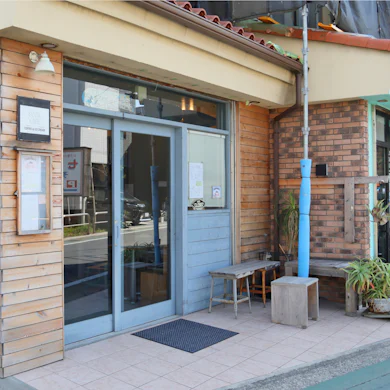 SODA CAFEは葉山駅から京浜急行バスで「森戸神社」まで。そこから徒歩1分のところにあります。