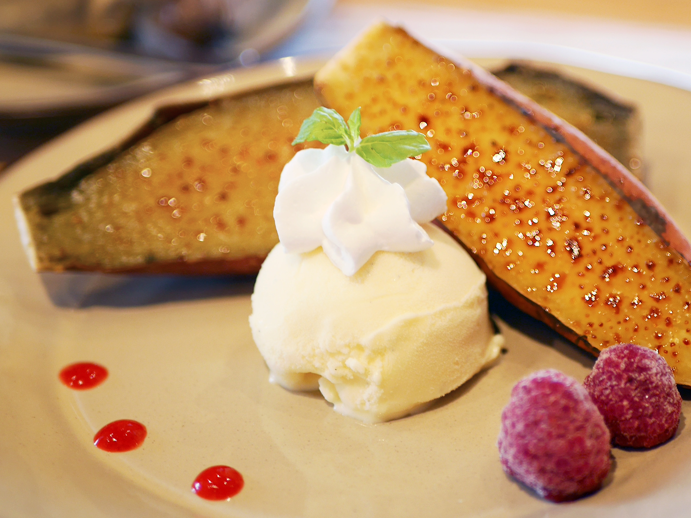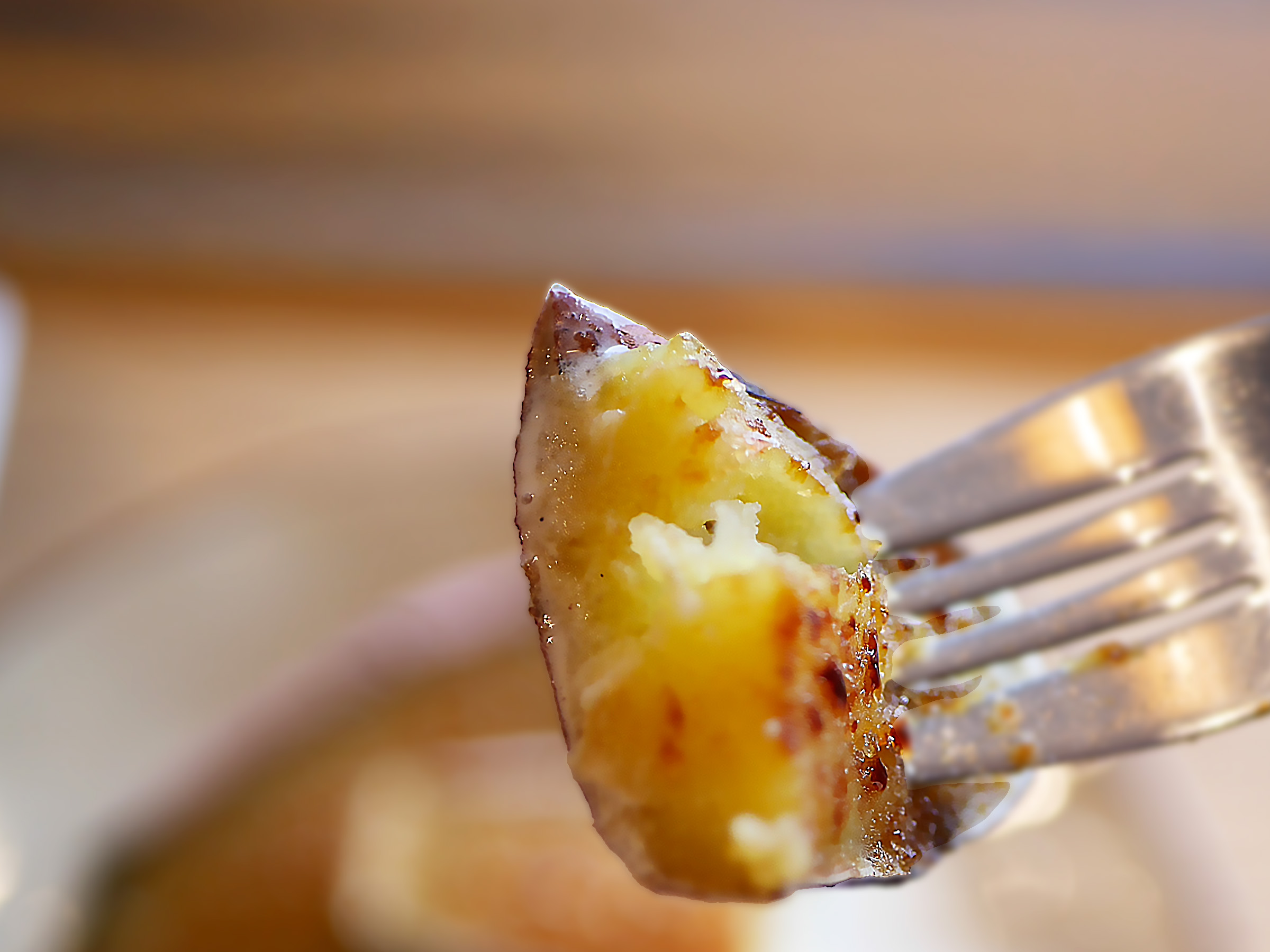 スプーンを入れた瞬間、キャラメリゼの“パリッ”と弾ける音とともに、焼き芋のしっとりと艶やかな黄金色の断面が姿を見せます。