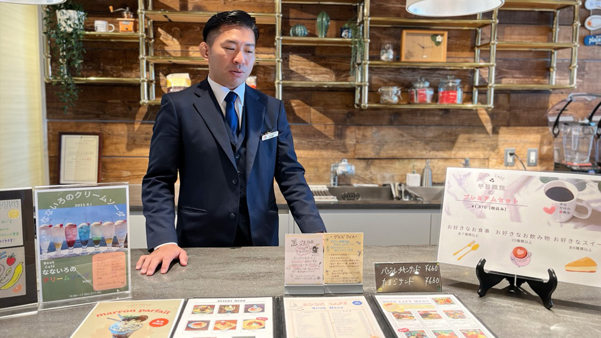 優しい光が差し込む店内には、スタッフが季節に合わせて選んだ本が並び、2カ月ごとにテーマを変えて入れ替えられます。本の紹介カードはスタッフが一つひとつ手作りし、来店者が感想を書き添えたカードも掲示。ページをめくる音をきっかけに自然と会話が生まれたり、スタッフと本の話題で盛り上がったり。本を通じて人がつながる体験が、このカフェの大きな魅力です。