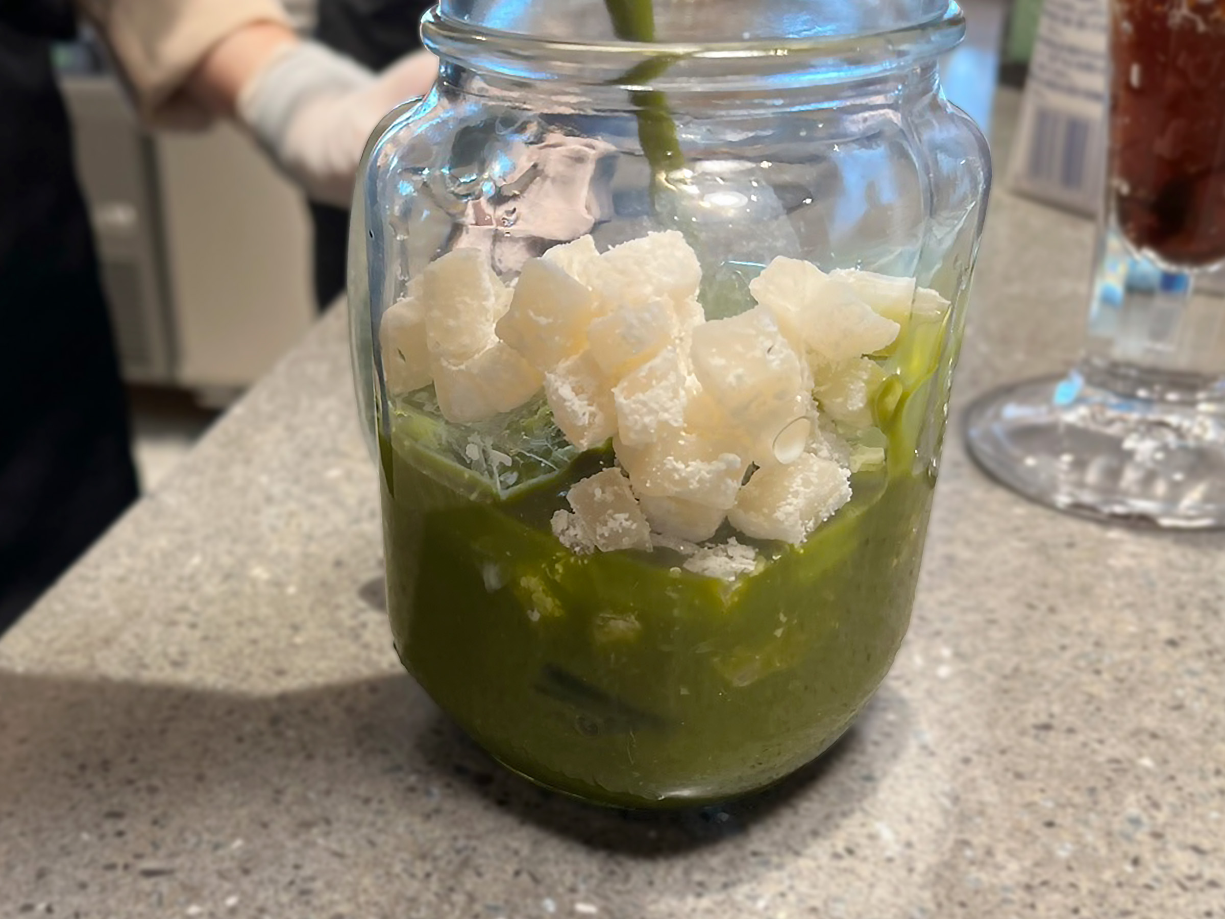 デザートドリンクとして好評なのが「飲むわらび餅入りラテ(550円税込)」。やさしい甘みの抹茶香るラテに、小さくカットされたもちもちのわらび餅が入り相性抜群。太いストローで吸う動作が自然に喉の筋肉を意識し、一口ごとに楽しむ様子が会話に現れます。