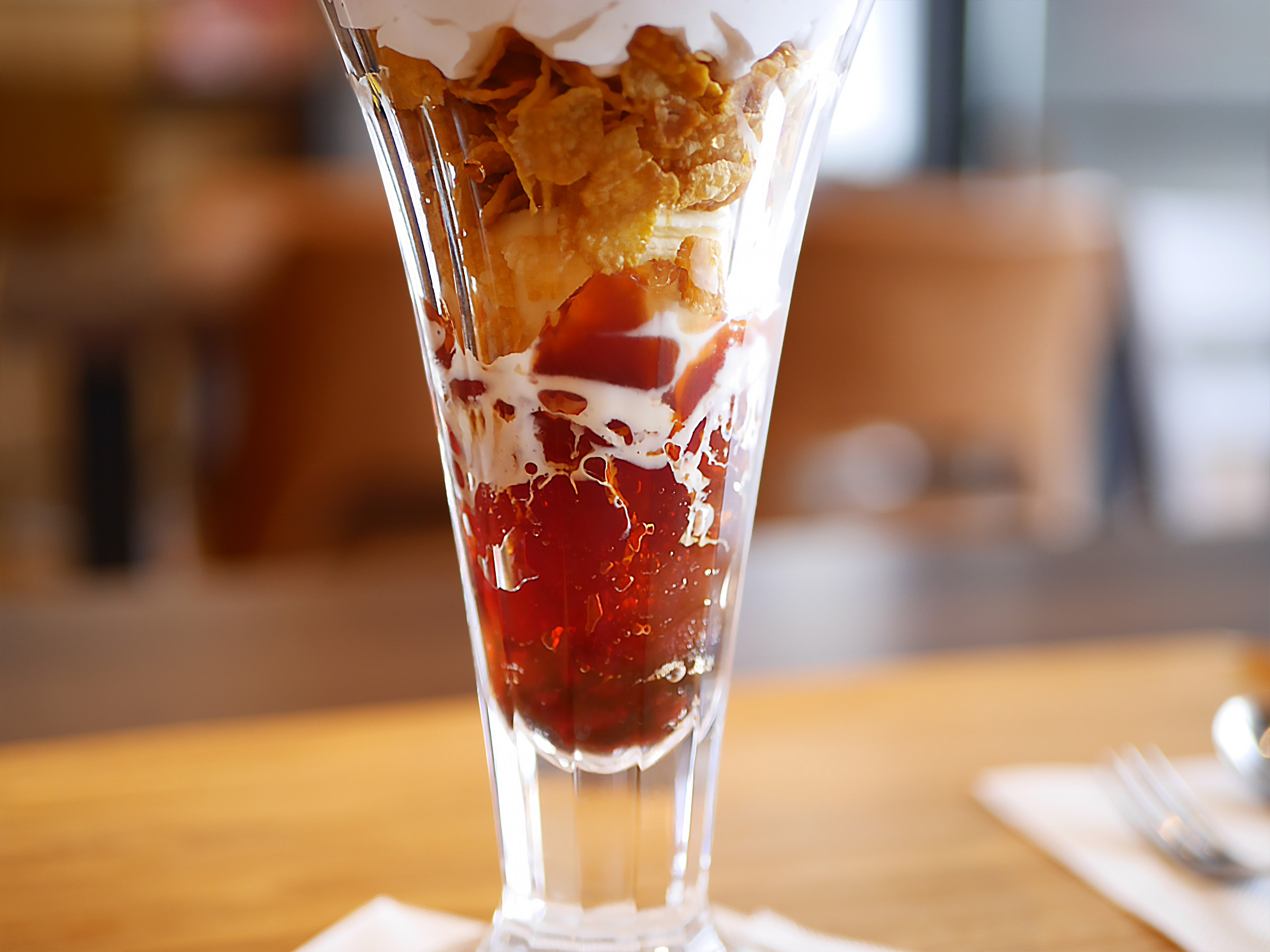 「最後まで飽きずに旬を楽しめるパフェを」と、スタッフ全員で試作を重ねて完成した味わいと食感のバランス。ひと口ごとに印象が変わり、ページをめくるような楽しさがある一品。食後でも多くの方がオーダーする人気に頷けます。