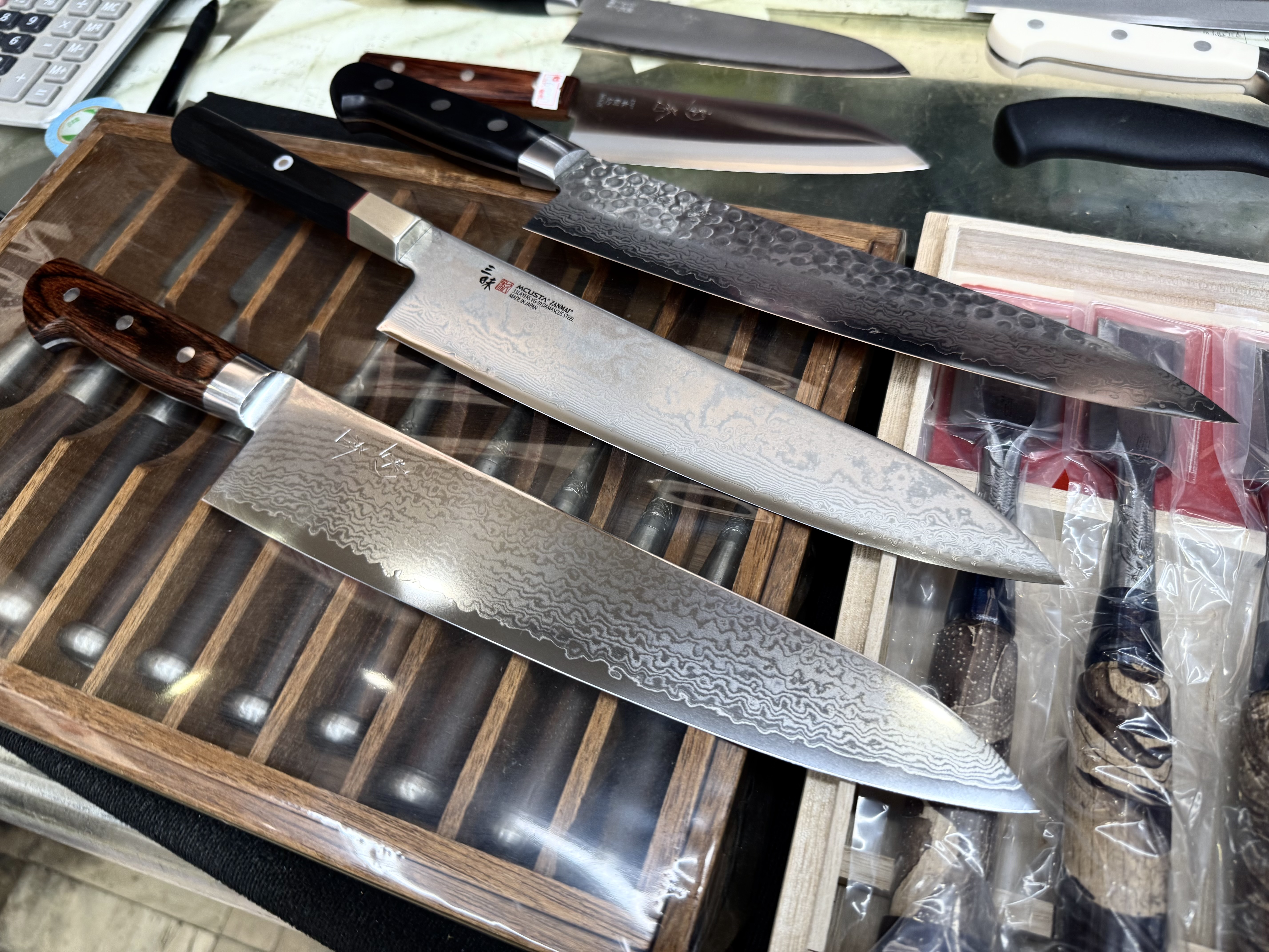 20年以上、年間2000本以上の包丁を手がける髙橋さんの技術を求め、プロの料理人や一般家庭の人々が、愛用の包丁を手に店を訪れます。某有名ホテルのナイフのメンテナンスも任されています。