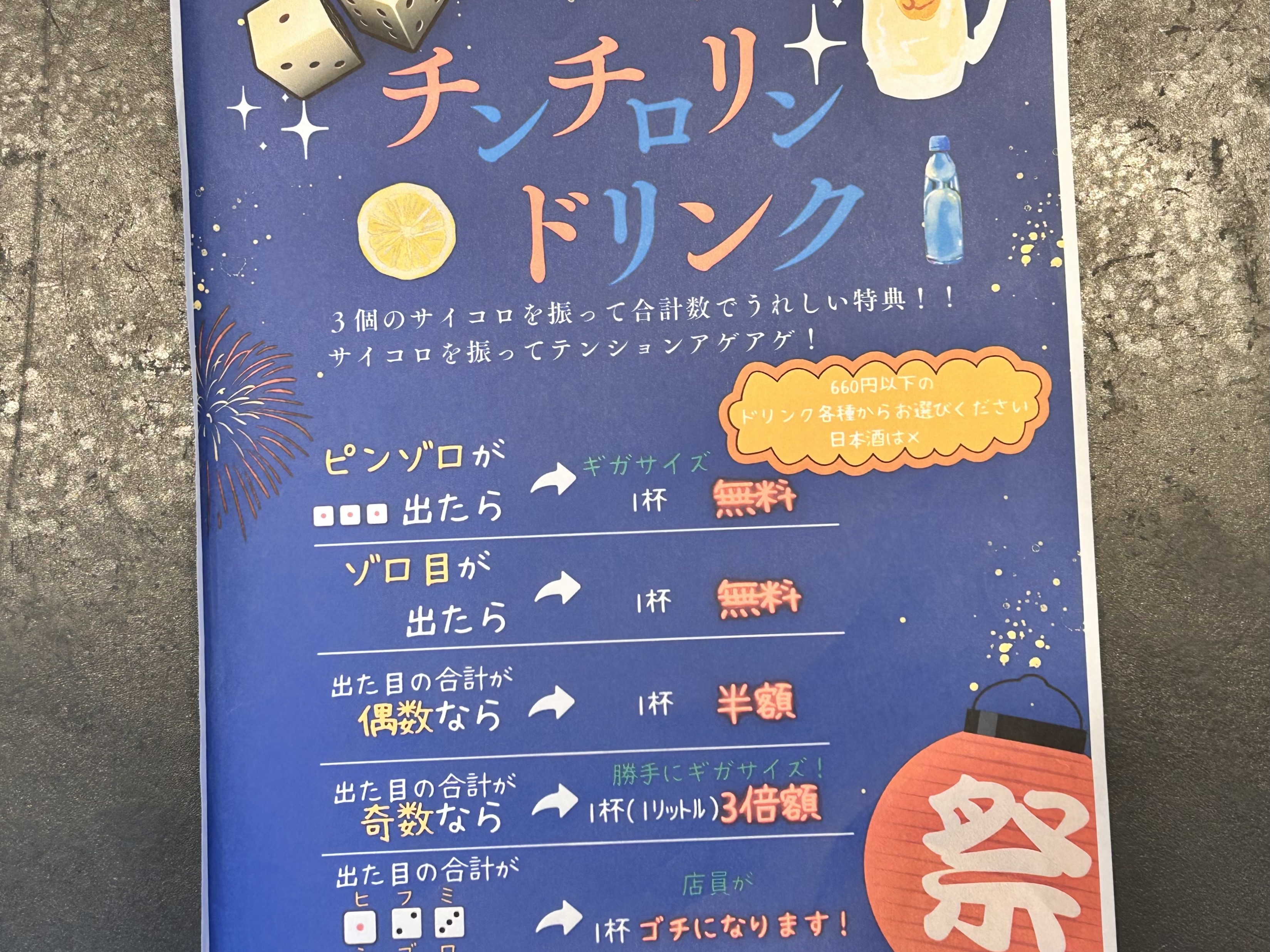 お店ののテーマは「お客様のテンションもアゲる!」。メニューには升からこぼれる刺身、ちくわ納豆の天ぷら、サイコロドリンクなど、“遊び心”が盛りだくさん。