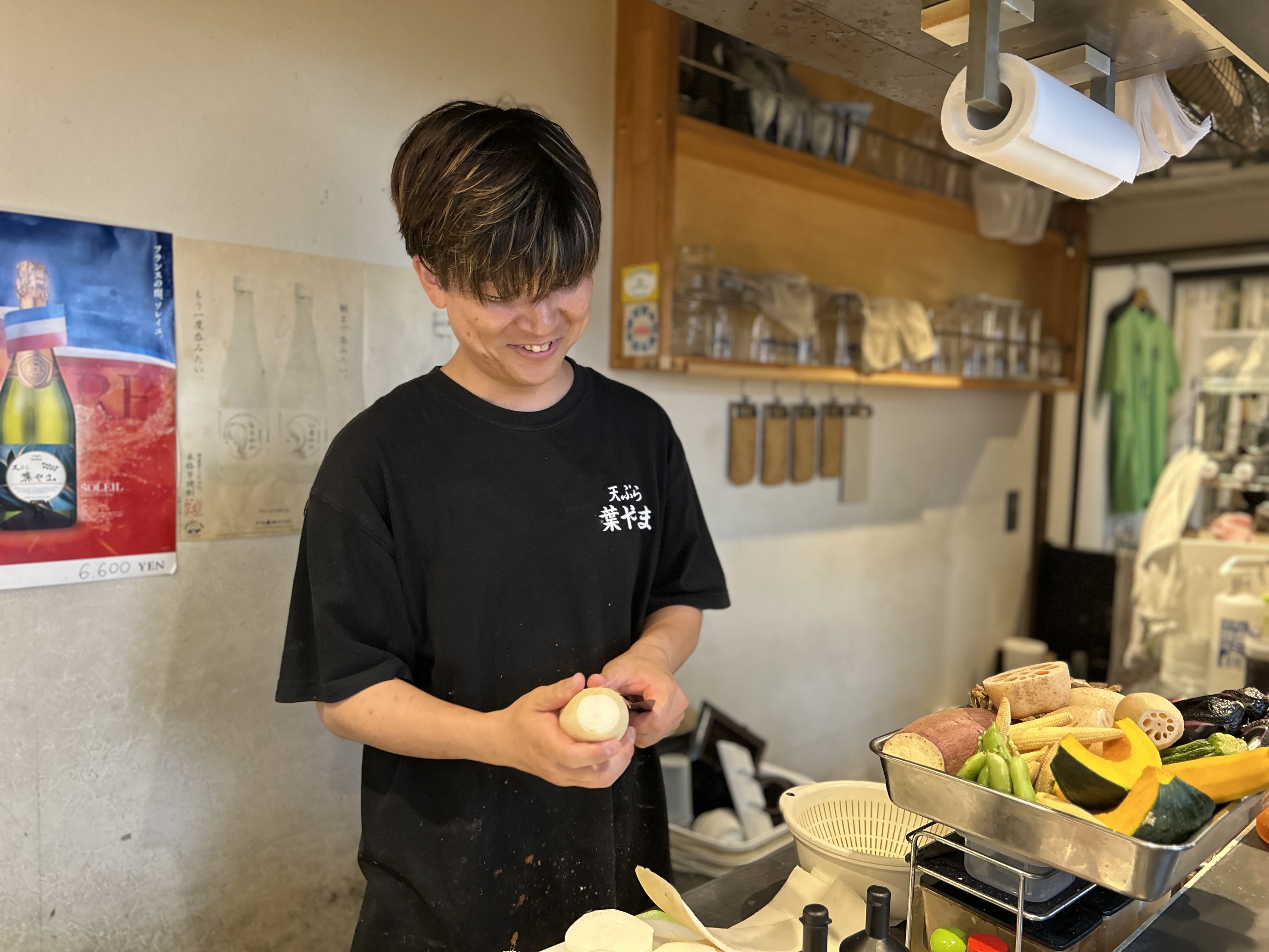 「お客様のテンションを上げ、揚げたての天ぷらで気分もアゲる!」そんなチャーミングなモットーを掲げる葉山さん。
