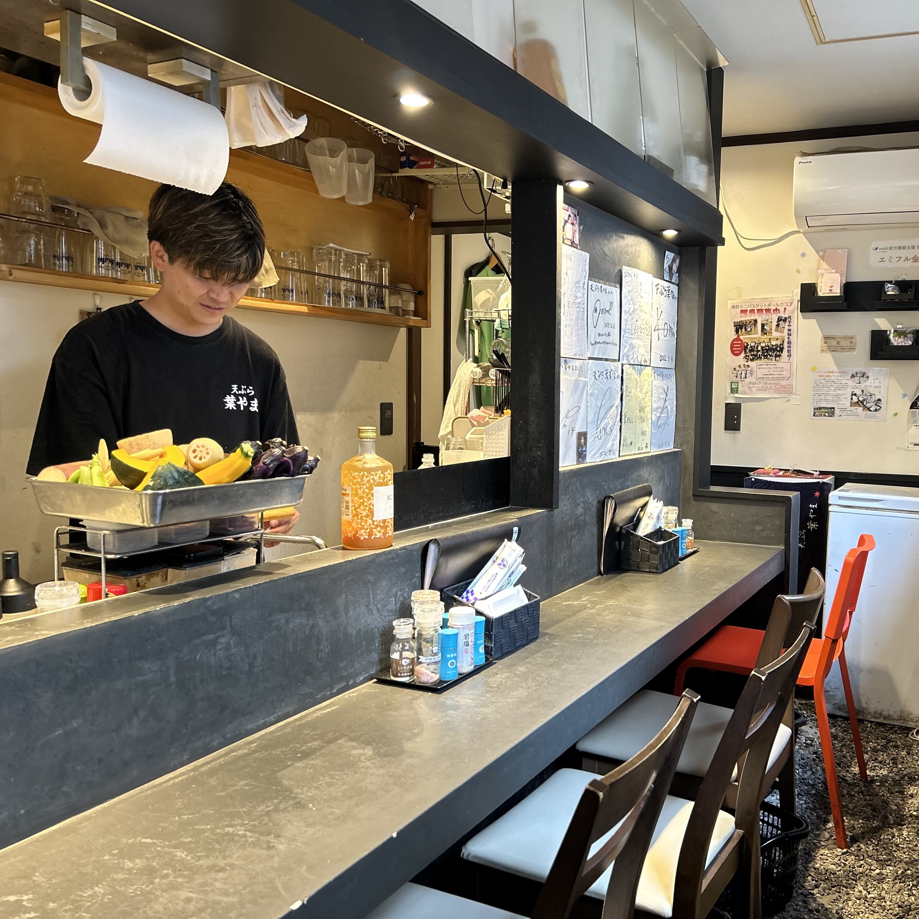 『天ぷら 葉やま』は、京急久里浜駅から歩いて約3分、路地裏にあるカジュアルな天ぷら居酒屋です。