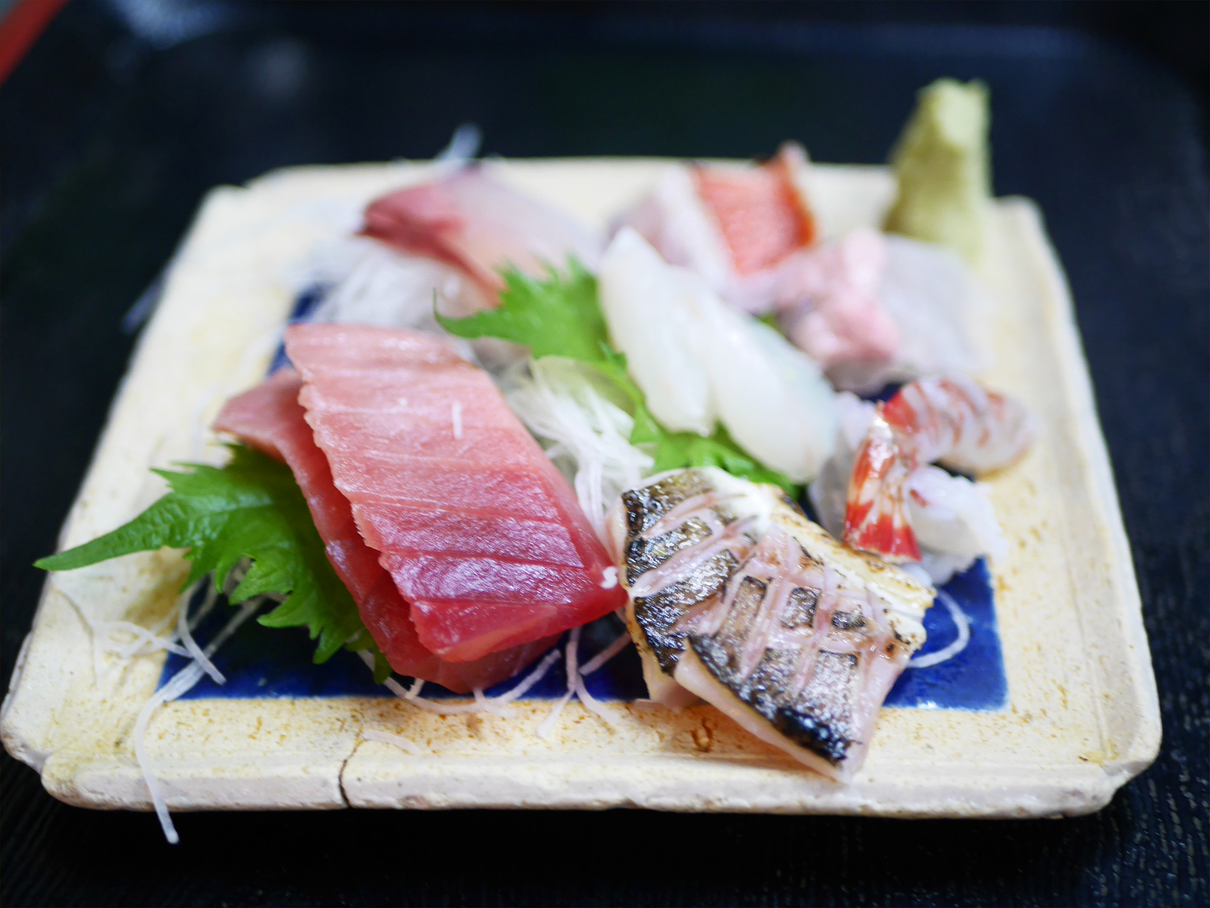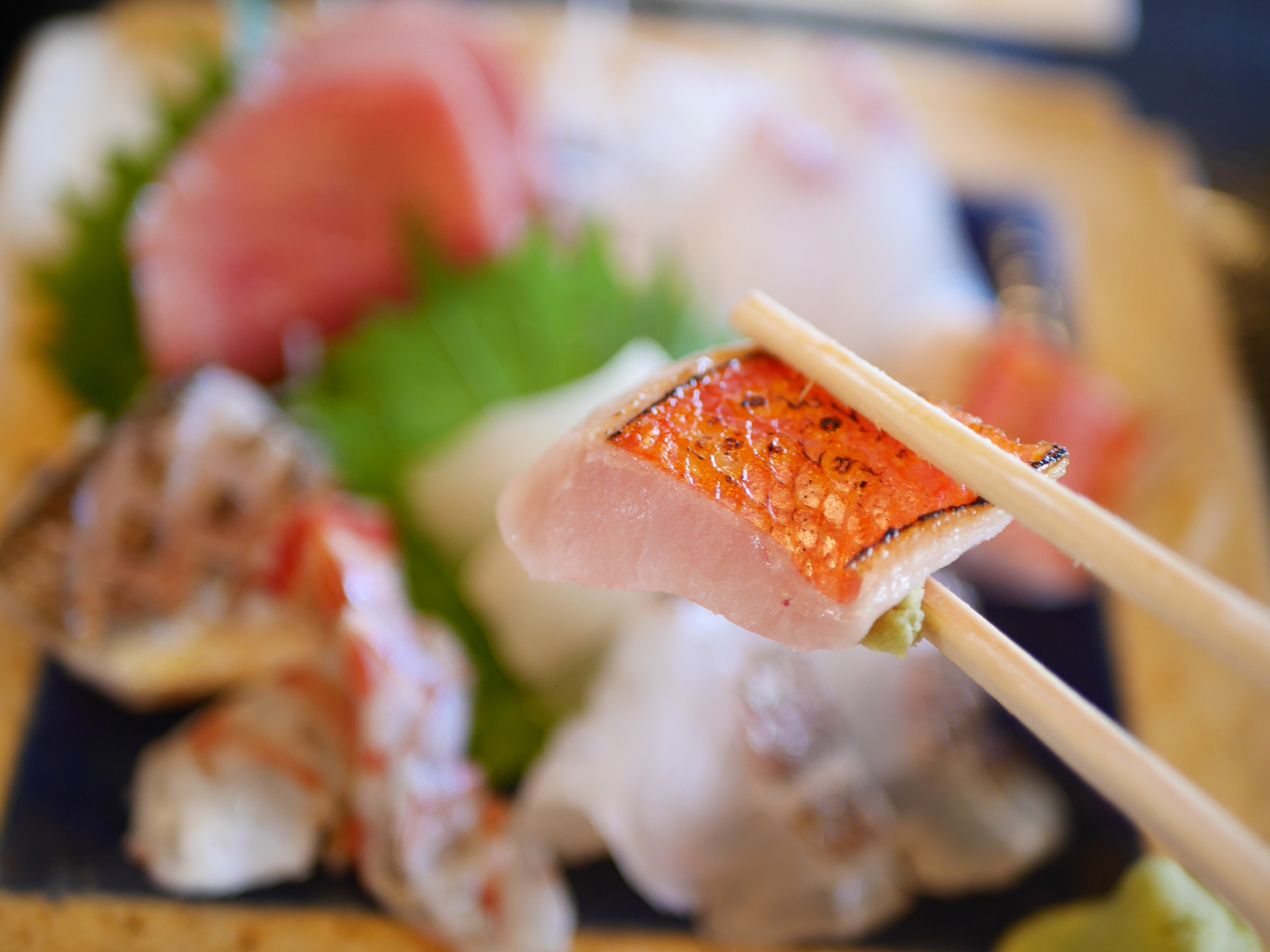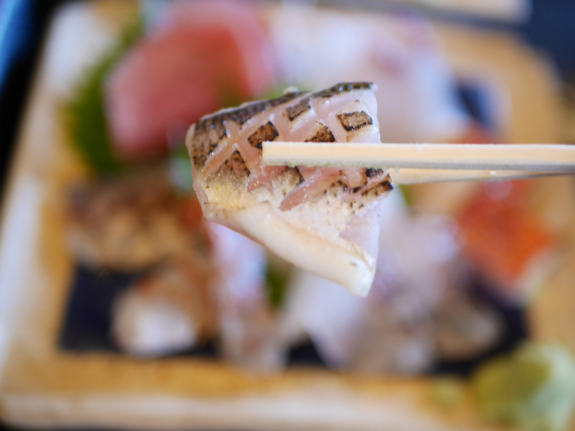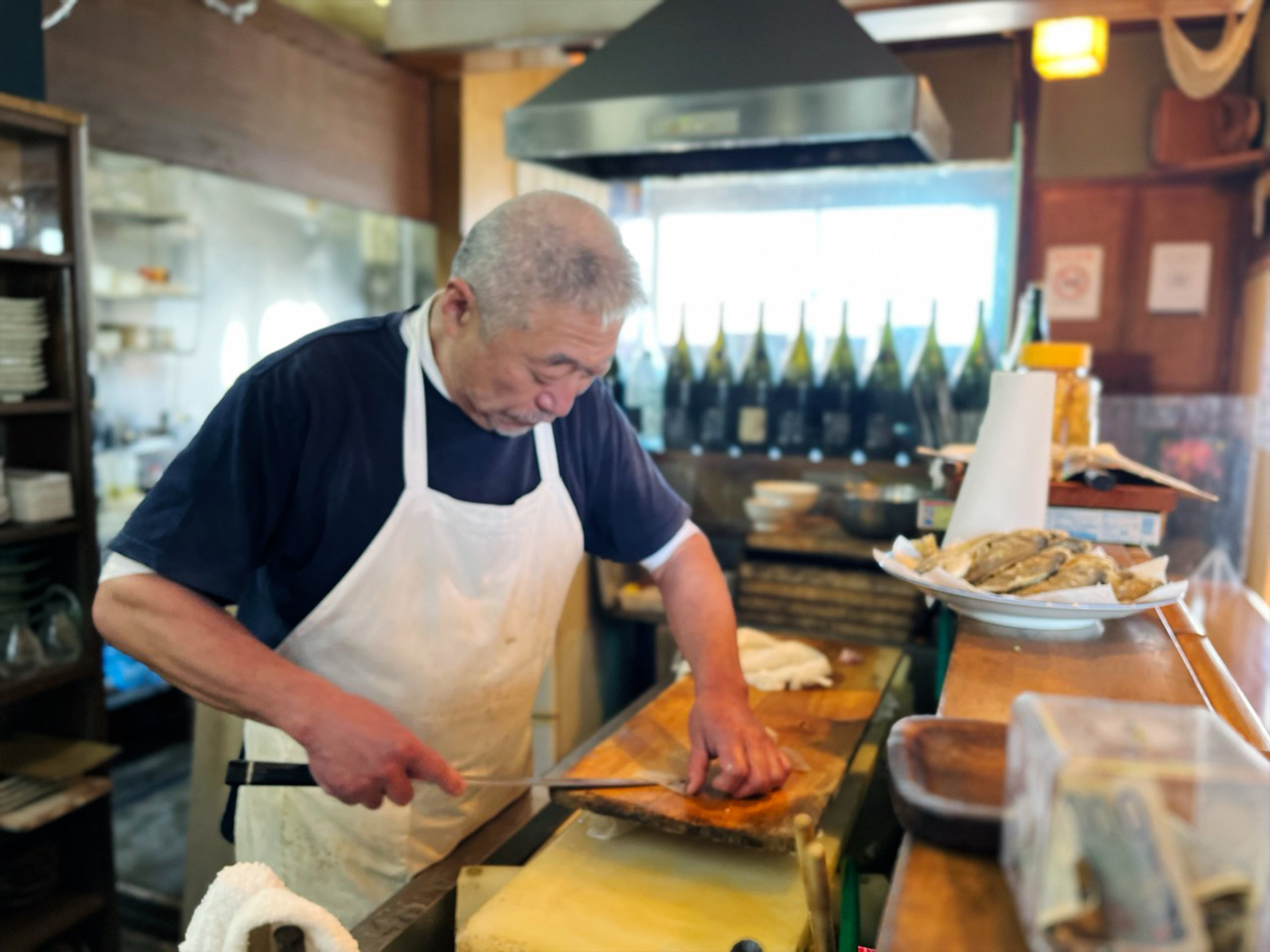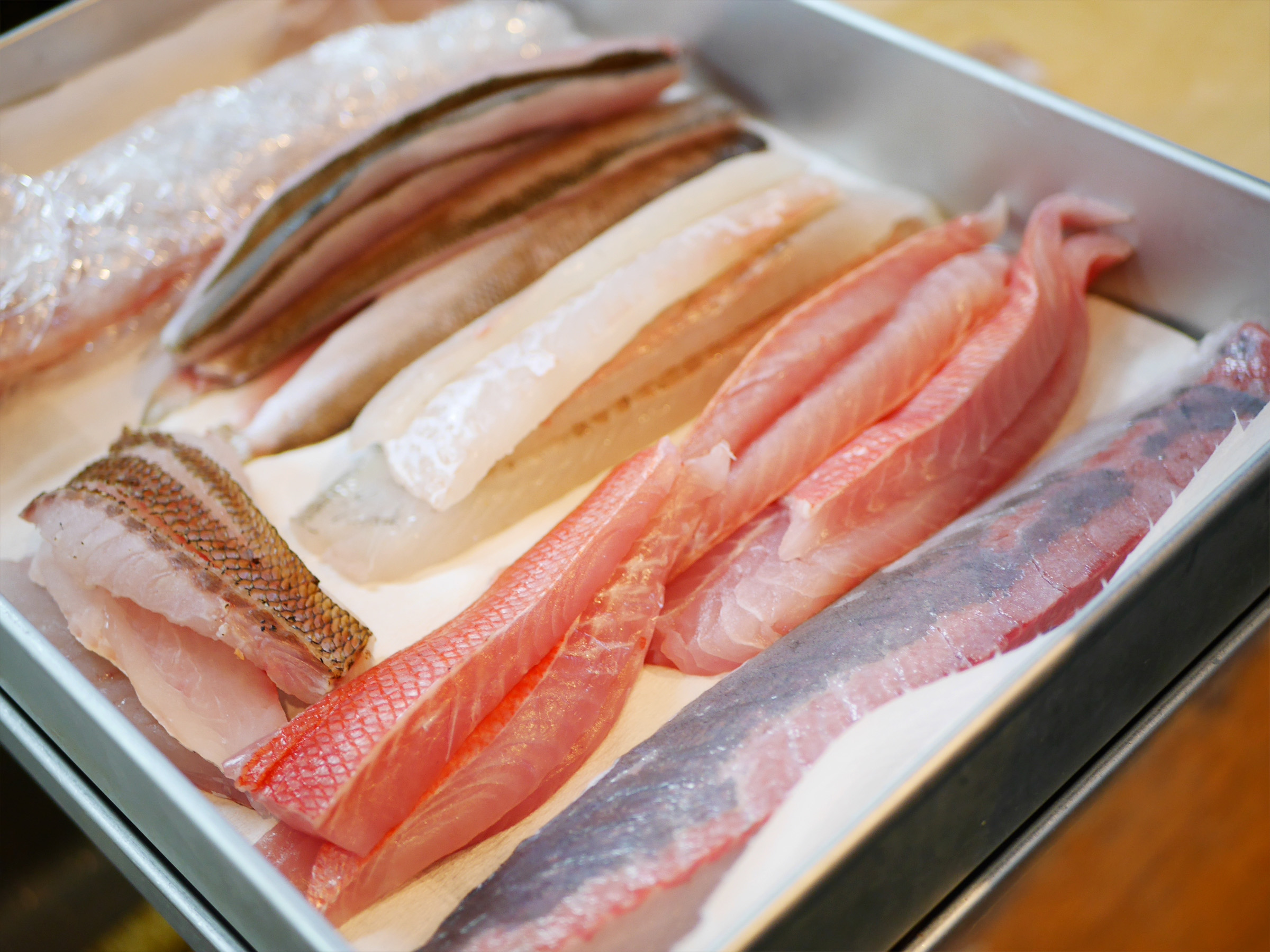 切り身の厚みや包丁の角度まで魚種ごとに最適を見極める包丁さばきは、まさに熟練の技。流れるような動作から生まれる一枚一枚が、食感と旨みを最大限に引き出します。「美味しく出すために教わってきたことを、当たり前にやっているだけだよ」と笑って話す飯田さんに、職人としての姿勢を感じます。