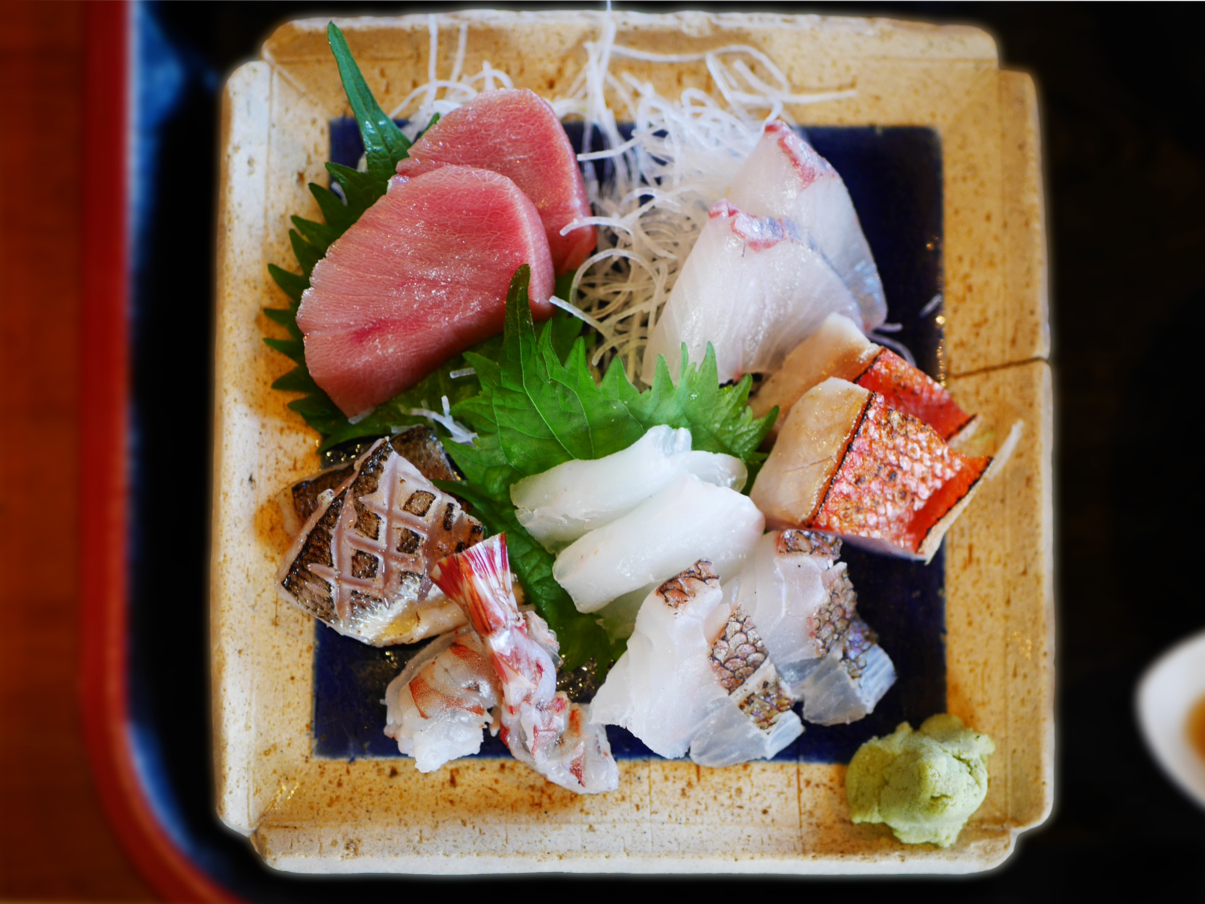 目の前に運ばれた瞬間、思わず息をのむ彩り。透き通る白身、ぷりっと弾む海老、艶やかに光る中トロ——そのすべてに“今ここでしか味わえない鮮度”が伝わってきます。