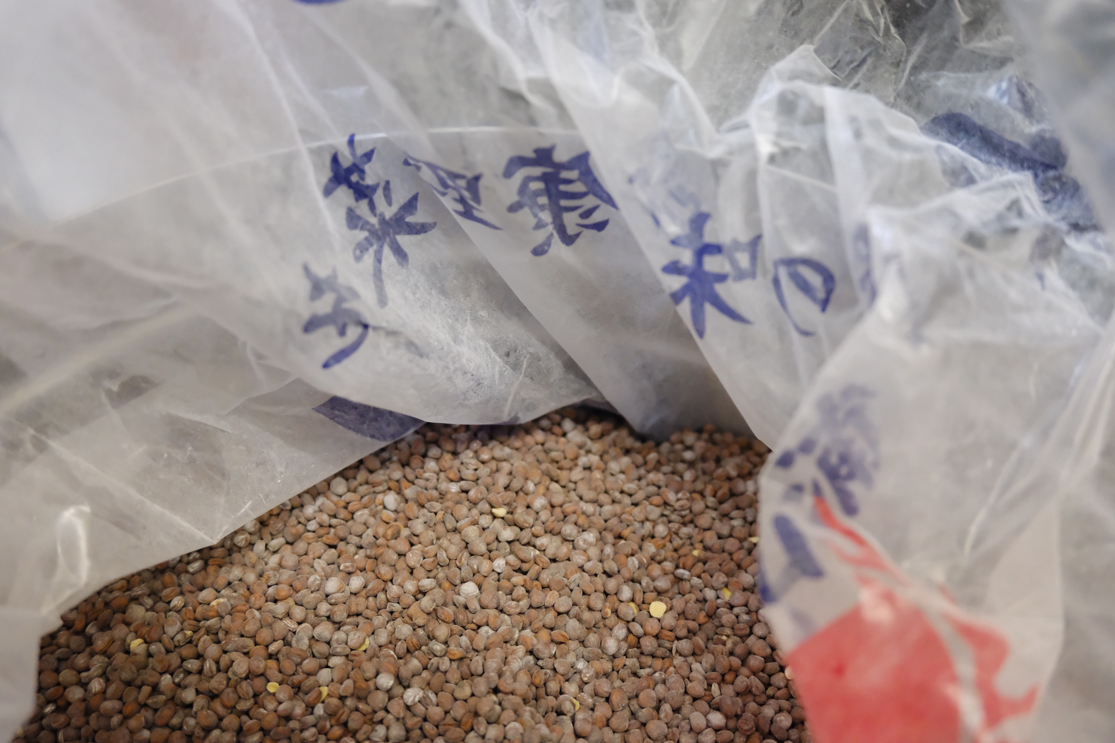 現在、国内で流通する野菜の種の多くが海外生産に頼る中、「中葉3号」の種は、三浦で育てられています。そして、その採取作業は、想像以上に手がかかります。稲を刈るのと同じように鎌で手作業で刈り取り、脱穀機にかけ、唐箕で選別し、干して、乾かす。