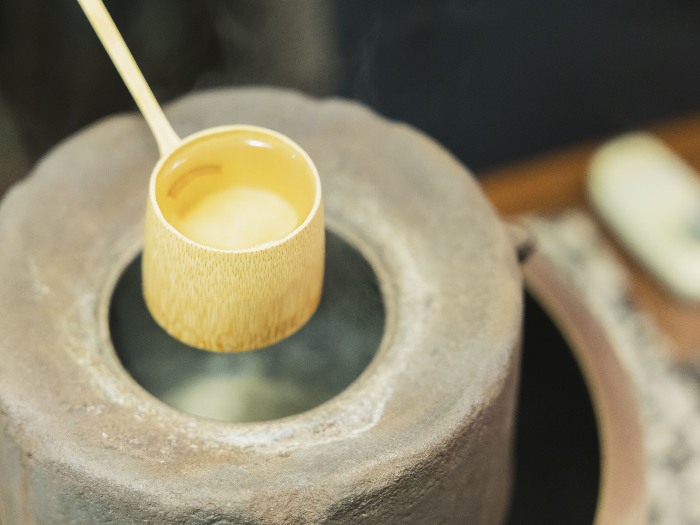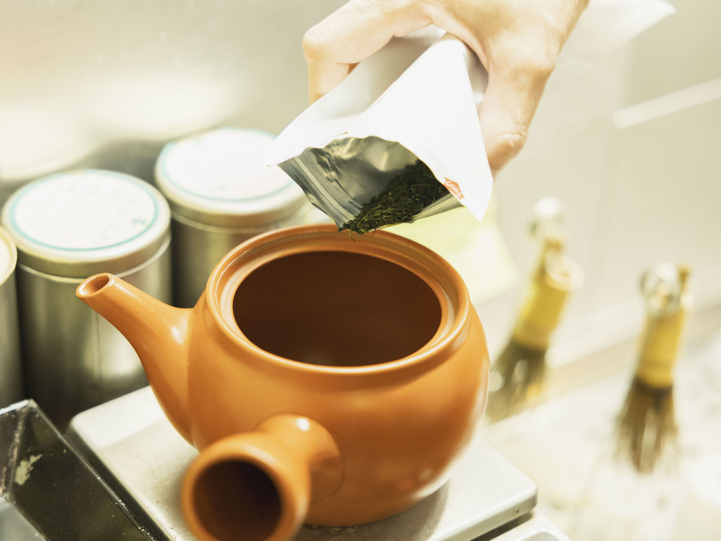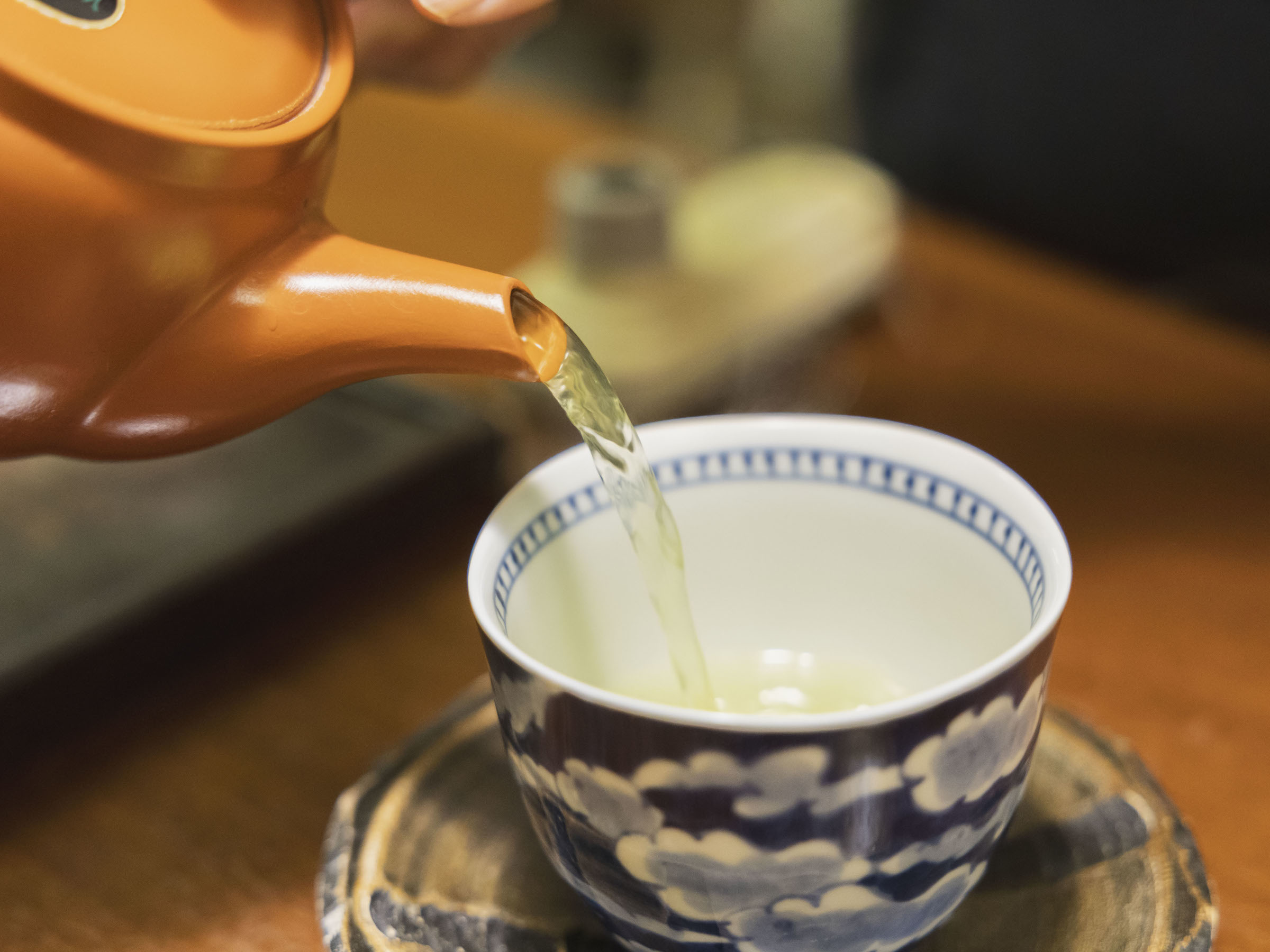 「このお茶は72〜73度くらいがちょうどいいんです」と佐藤さん。鉄茶釜から汲んだお湯を茶器に移し、丁寧に温度を下げてから、1分ほどで抽出します。これ以上置くとカテキンなどが出過ぎて、味わいにえぐみが出てしまうそうです。