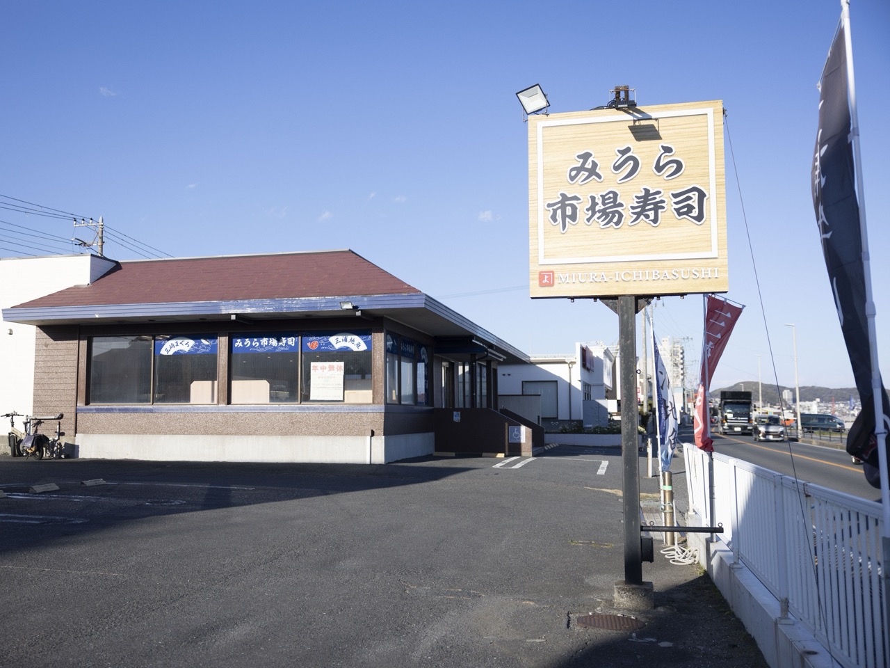 三浦海岸沿いにある「みうら市場寿司」には、新鮮な三崎マグロを求めに多くの人が訪れます。一番人気のメニューは見た目も豪華な「三崎まぐろ5貫盛」(1,045円・税込)です。取材日にいただいたのはメバチマグロの赤身、ビンチョウマグロ、ミナミマグロの赤身と中トロ、ネギトロ巻き(メバチマグロ・ミナミマグロ)の5貫。美しい赤みが鮮度の高さを示しています。
