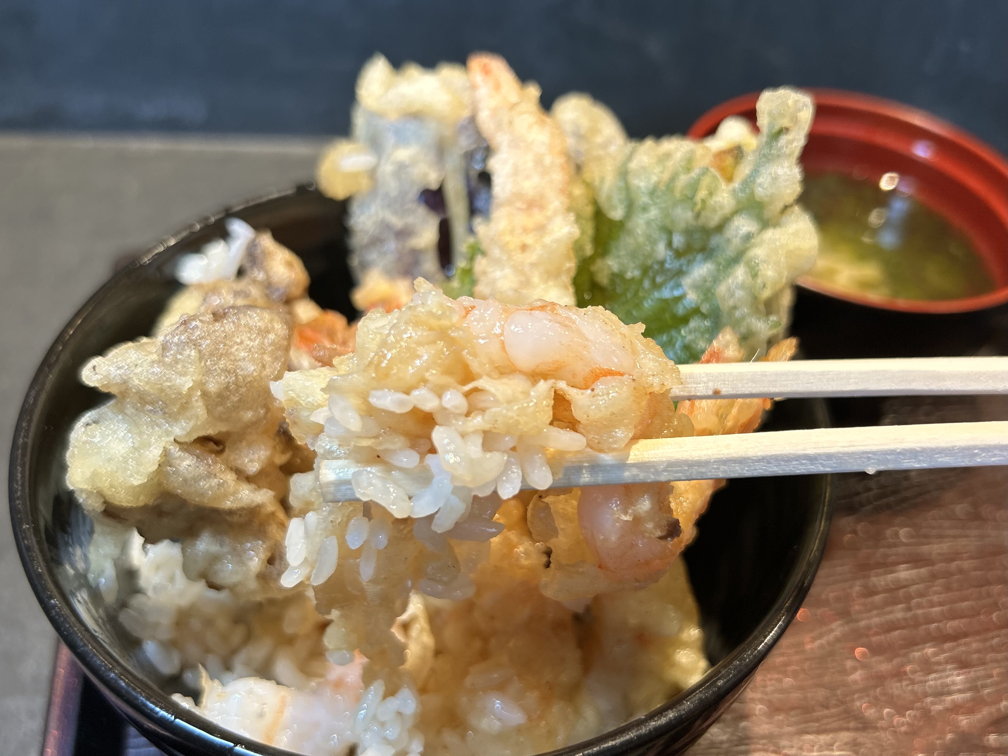 京急久里浜駅から歩いて3分。『天ぷら葉やま』は、揚げたての天ぷらをカジュアルに楽しめる天ぷら居酒屋です。小海老や旬野菜が美しく盛られた「海老天丼」は、軽やかな衣と旨みのタレが絶妙で、口の中がまさに“アゲアゲ”に!