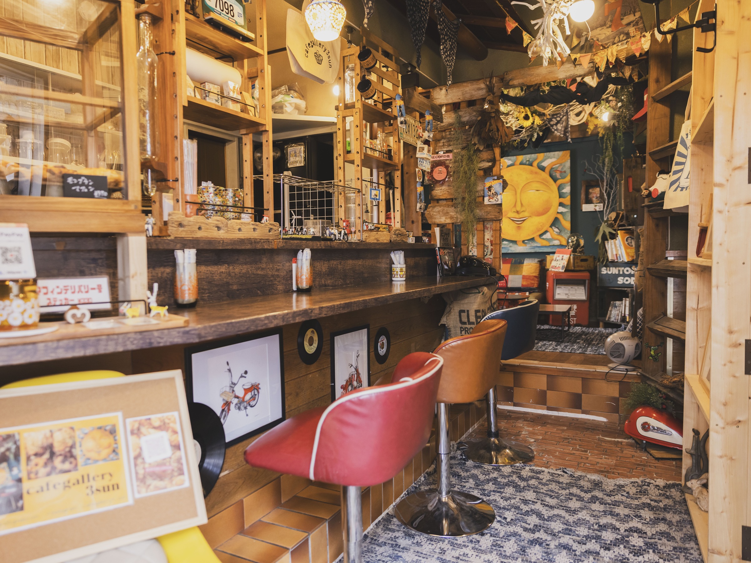 可愛らしい外観が気になる「cafegallery3sun」。思い切って扉を開けてみると視界に飛び込んできたのは、所狭しと並んだ店主の菊地美紀さんのコレクションたちでした。