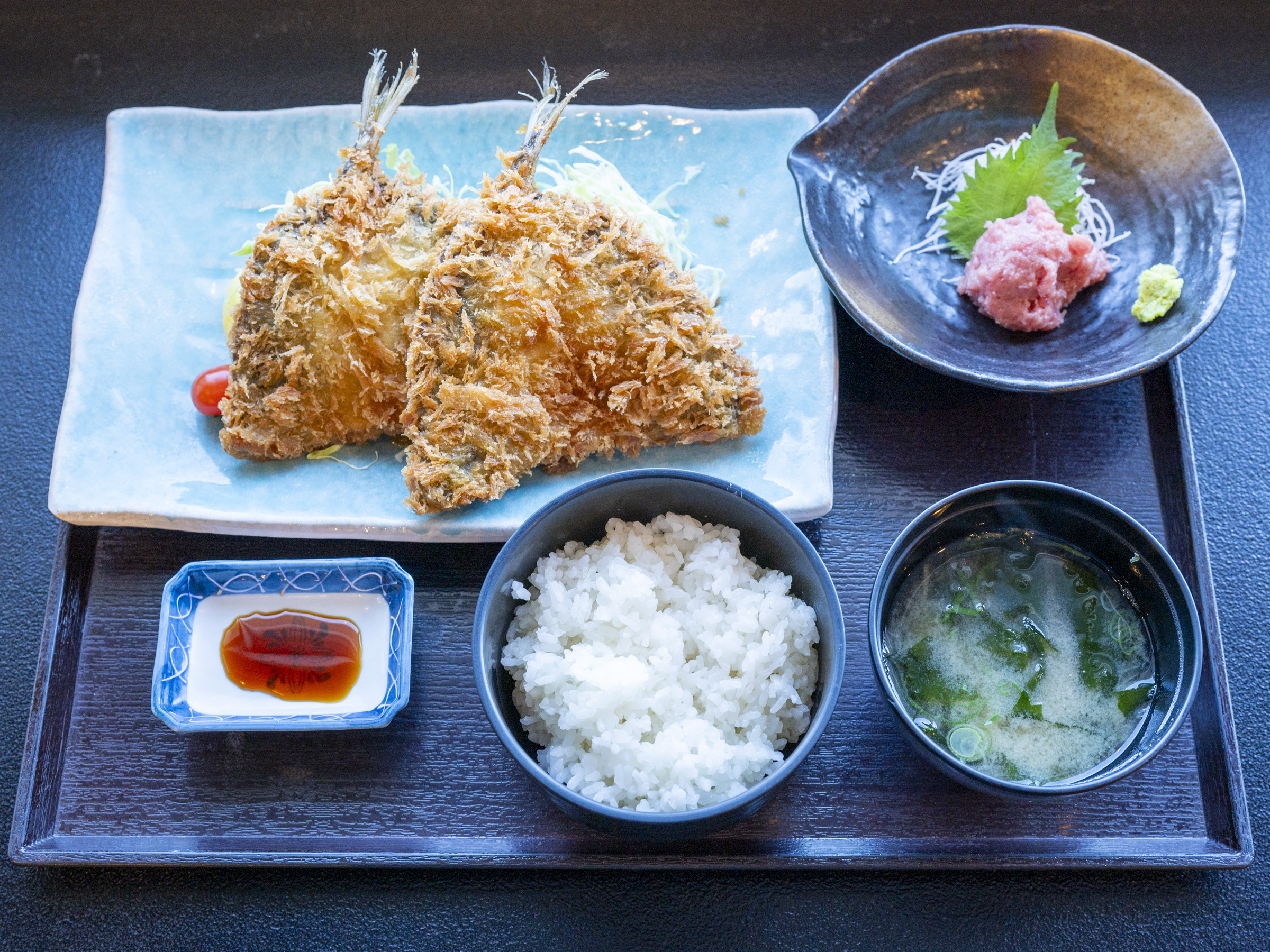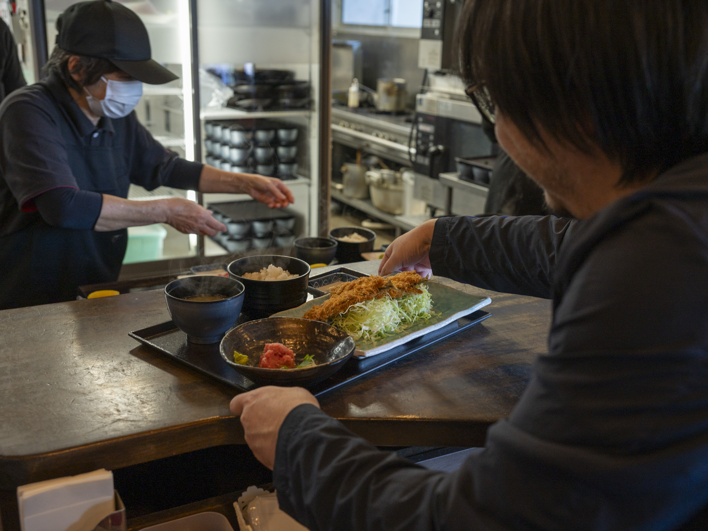「お年寄りのお客様も残さず食べてくれますよ」と、料理人の松本稜右(りょうすけ)さん。アジのジューシーさが際立っているため、揚げもの特有の重さは確かにあまり感じられません。
