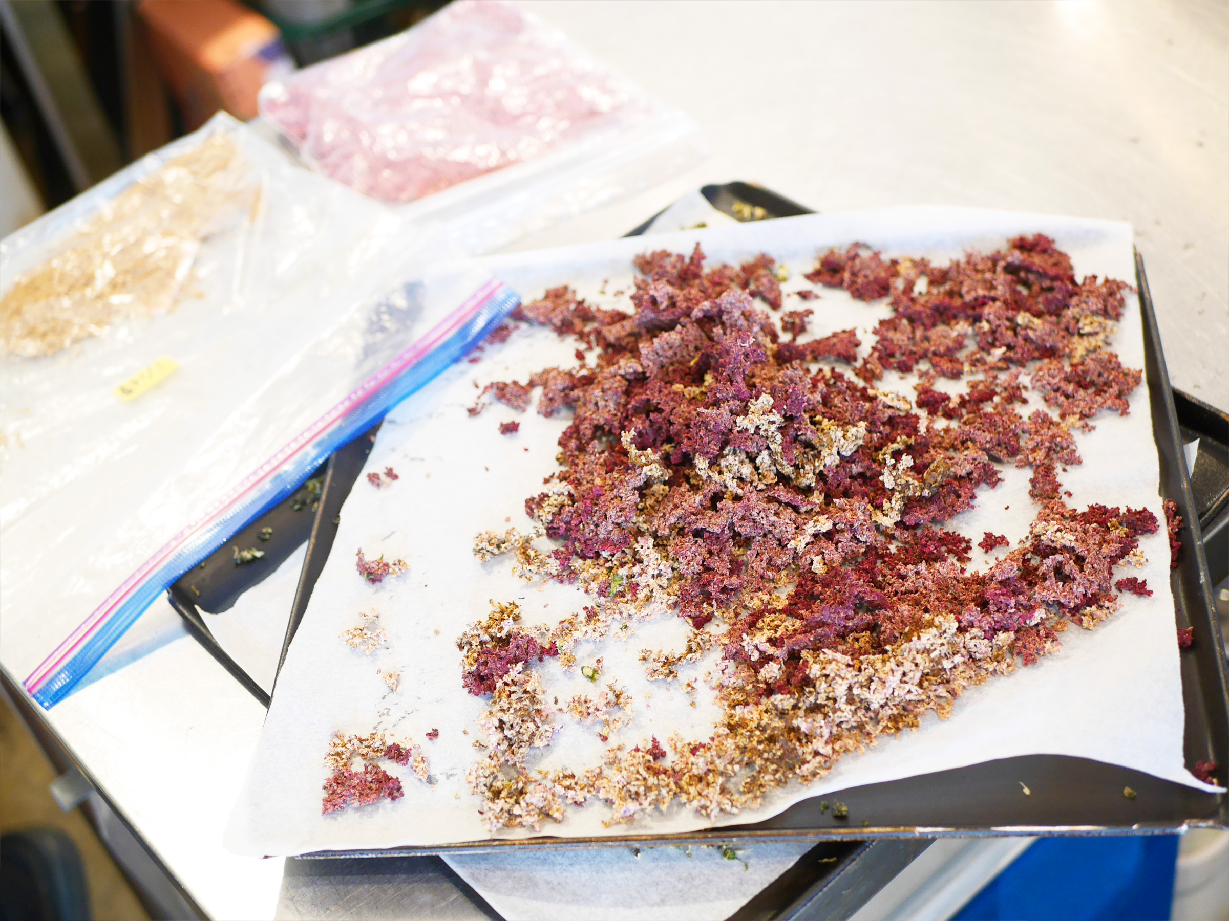 葉山産のしらすとともに使う野菜は、天日干しと食品乾燥機でじっくり乾燥。逗子の海風と太陽が育むこの工程により、旨みと栄養が凝縮され、野菜本来の甘みや風味が際立ちます。