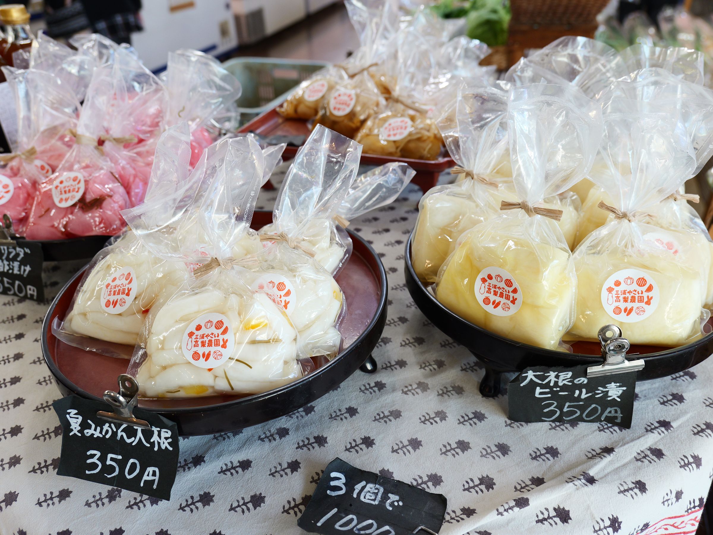 野菜だけでなく加工品を多く扱っているのが、同店の特徴。生野菜は大きくて持ち帰るのが大変、と感じるお客さんも購入しやすくなるように考えました。