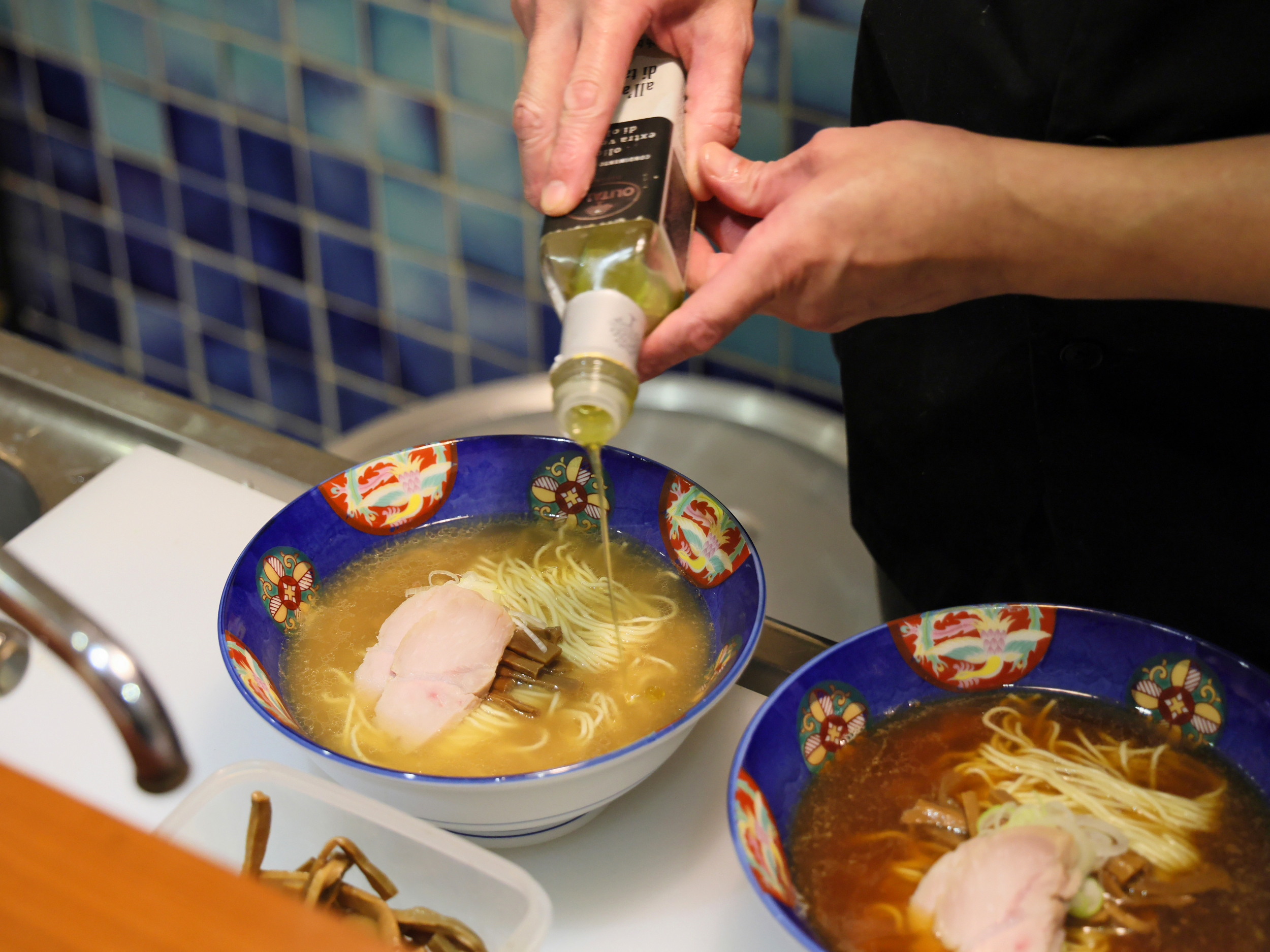 醤油ベースの看板メニューとは趣を変え、貝の旨味を土台に、トリュフオイルの香りを重ねた一杯。