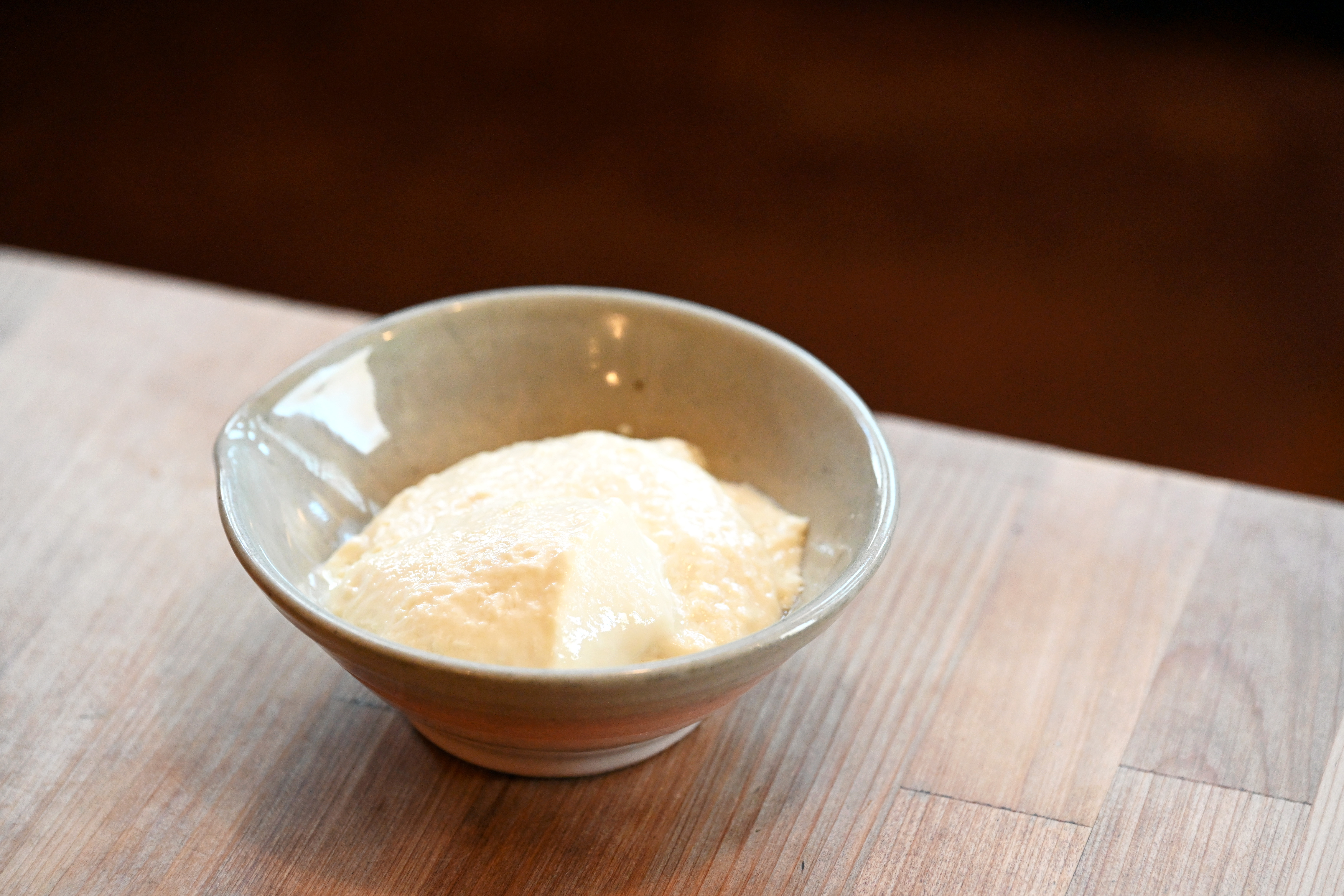 訪れるとまず驚かされるのがお通し。自家製のゆし豆腐が提供されるのですが、そのただならぬおいしさにスタートからテンションが上がります。