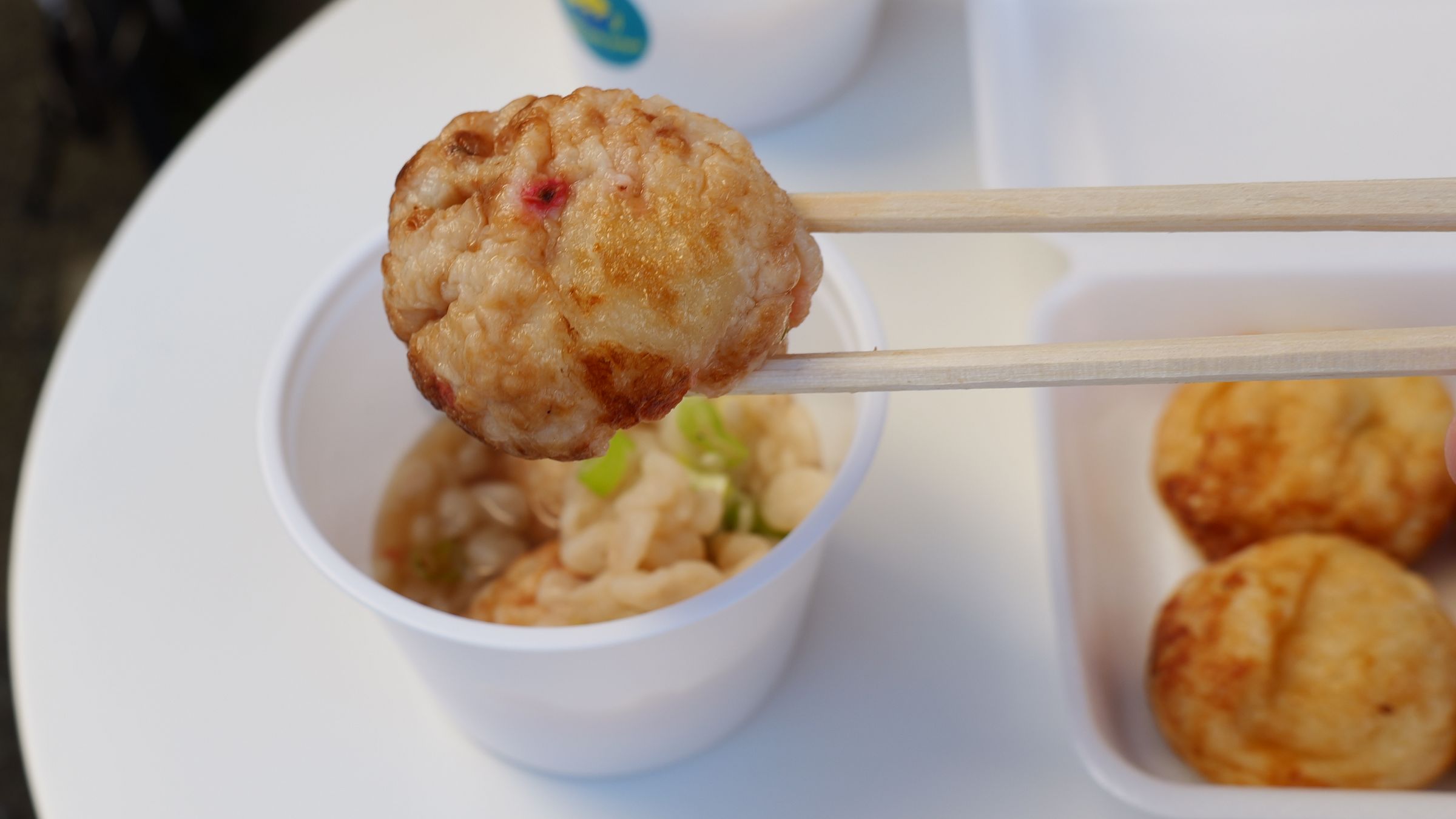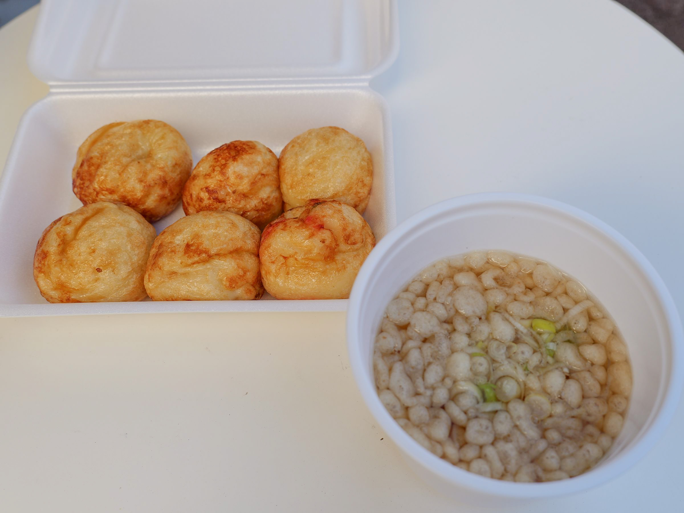 たこ焼きをスープに浸して食べると、「たぬきうどん」のような味わいです。出汁をたっぷりと吸ったたこ焼きは、ちゅるんとした“のど越し”で、身体があったまります。
