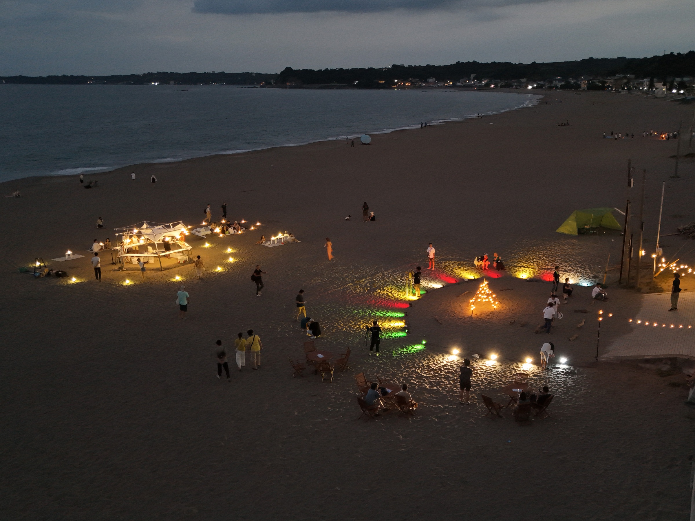 結果はどちらも大成功。「MIURA BEACH うみあかり」は夕暮れから砂浜をライトアップし、サンドソファのうえでお酒と音楽を楽しめるイベントに。飲み歩きが楽しめる「バルウォーク」は夏・秋、そして今年2025年春にも開催され、三浦海岸近辺の飲食店の半数以上が参加するなど、盛り上がりを見せました。