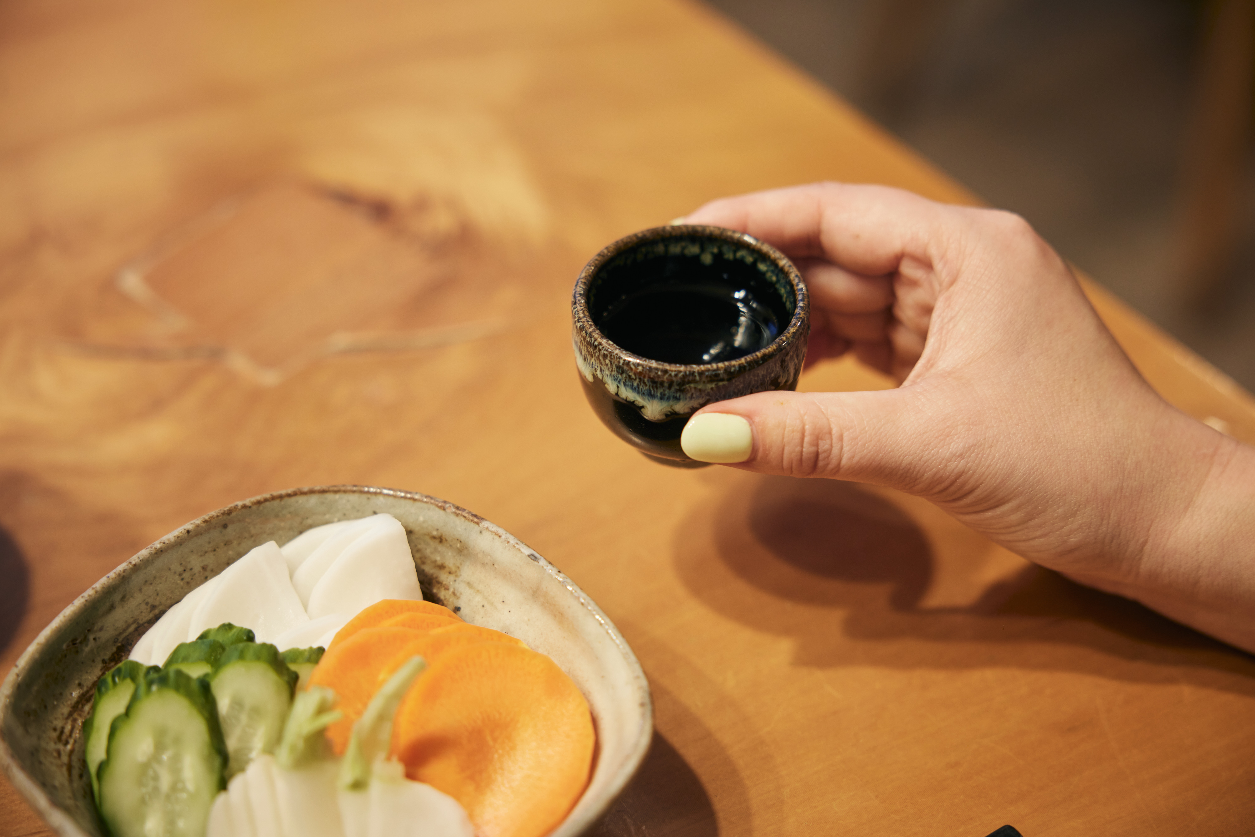 森本さんのおすすめが「ぬか漬け」(370円)。なんとも渋いチョイスですが、「お店の歴史をともに歩んできた20年近く使っているぬか床で漬けている、知る人ぞ知る人気メニューなんです」と森本さん。発酵による塩味と旨みがいい塩梅で、お酒のアテとしてはもちろんおにぎりにもよく合います。