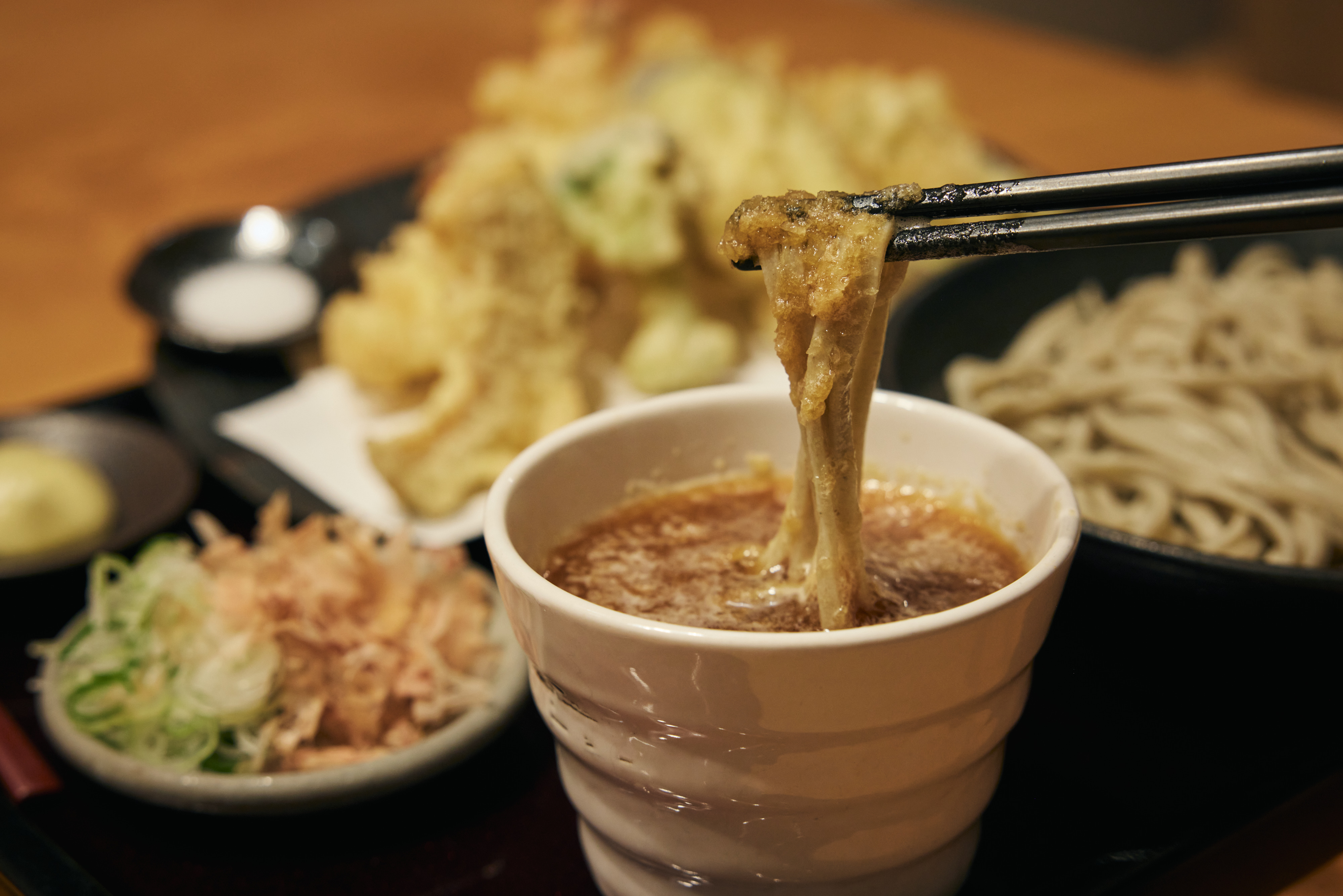 福井の郷土料理“越前そば”を味わえる「そば席御清水庵あん彦」。越前で修行した店主・森本雅之さんが毎朝打つ、福井県産のそば粉を使った本場の味が評判の一軒です。