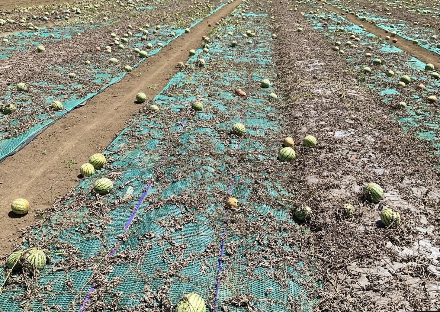 真夏の太陽の下、甘い香りを放っていたスイカ畑。収穫を終えた畑は、次の作物のための準備に入ります。