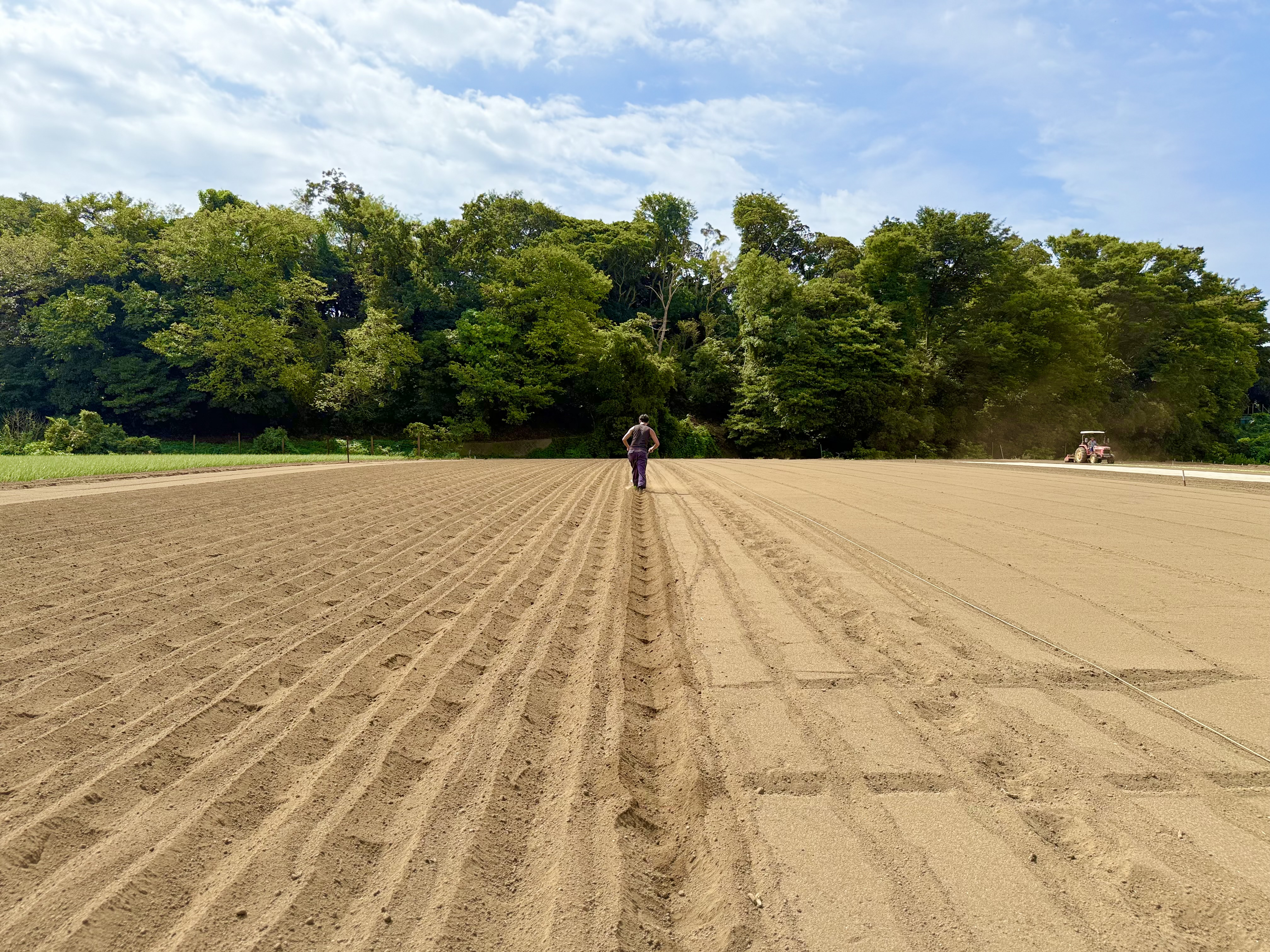 8月の終わり、夏から秋へと季節が移り変わる“端境期(はざかいき)”。加藤農園では、一面に広がっていたスイカ畑がすっかり片付けられ、冬が旬の大根の種まきが行われました。