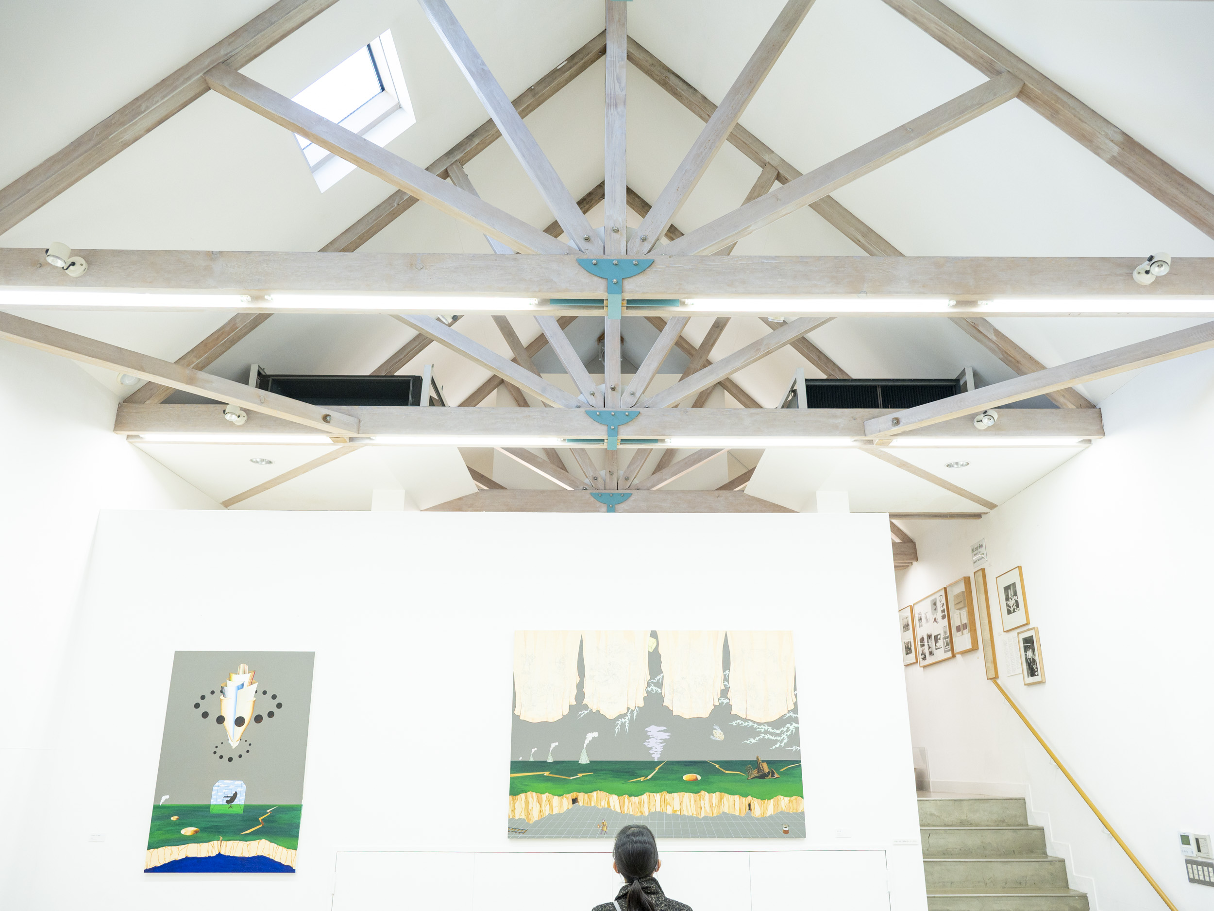 チケットを購入し、右手の部屋が第一展示室です。「カスヤの森現代美術館」は、現代美術という今を生きるアーティストを中心にした企画展を行っています。年間4、5回、2〜3ヶ月ごとに入れ替わります。