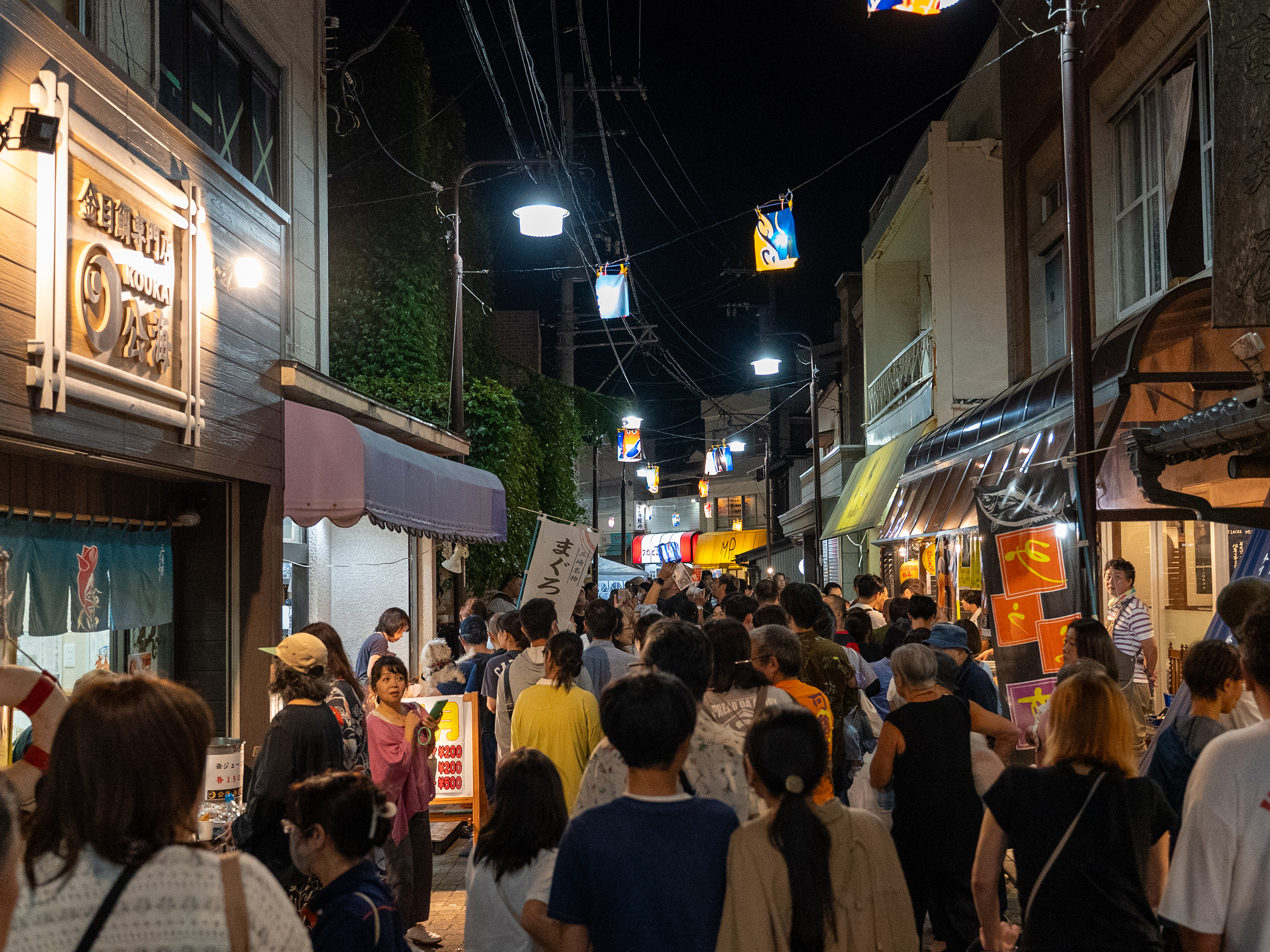 コロナの間はなにもできず歯がゆい思いをしてきたそうですが、5年間休止に追い込まれていた三浦の「食」をテーマにしたイベント「みうら夜市」が2024年から再開。ここでも石渡さんは活気作りに尽力しています。(下の写真はイベント時の様子)