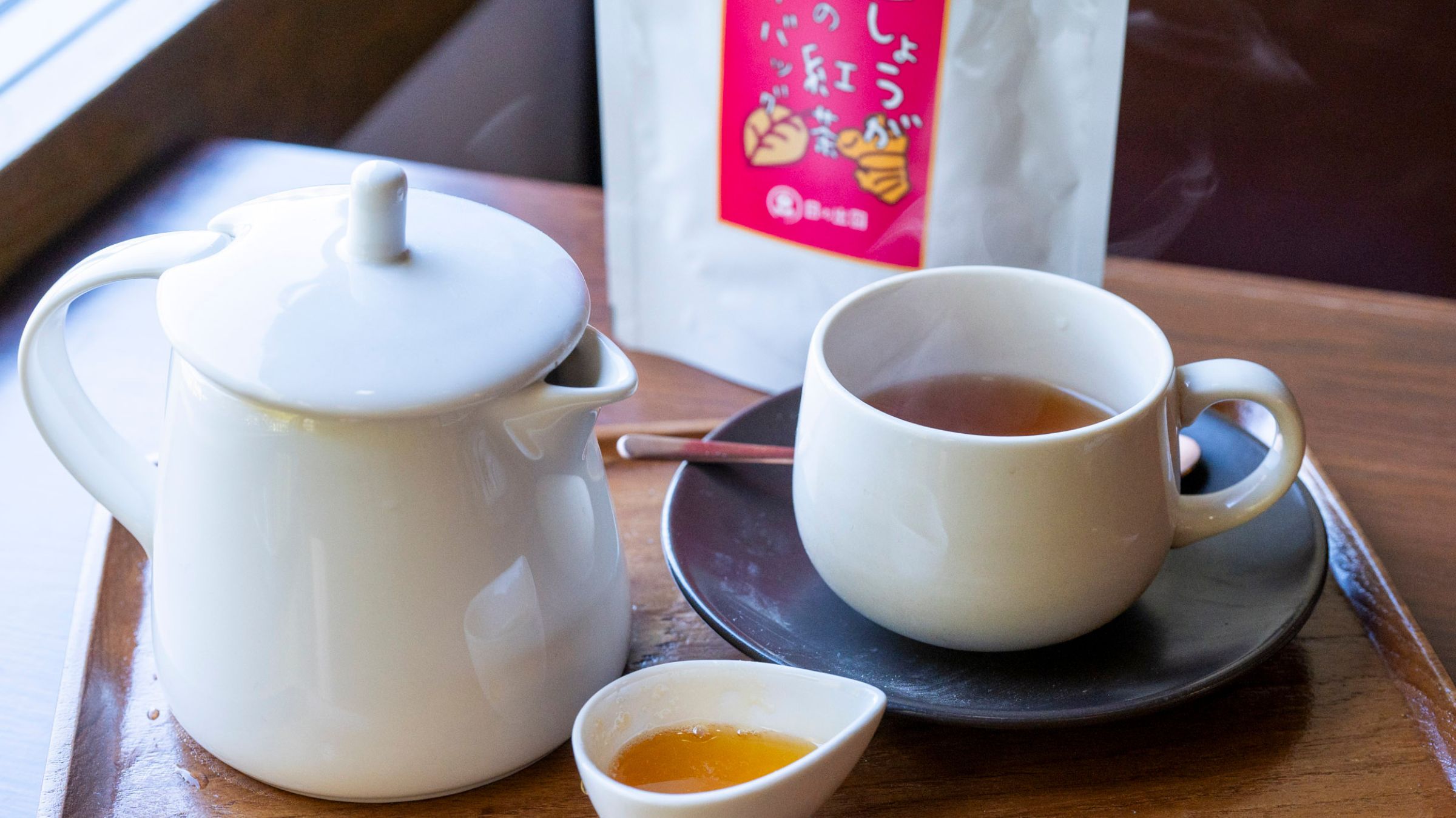 熱々のお湯でいれた紅茶は、生姜の爽やかな刺激と茶葉の深い味わいが口の中で広がり、ほんのり甘い蜂蜜を加えると生姜の香りがより引き立ちます。