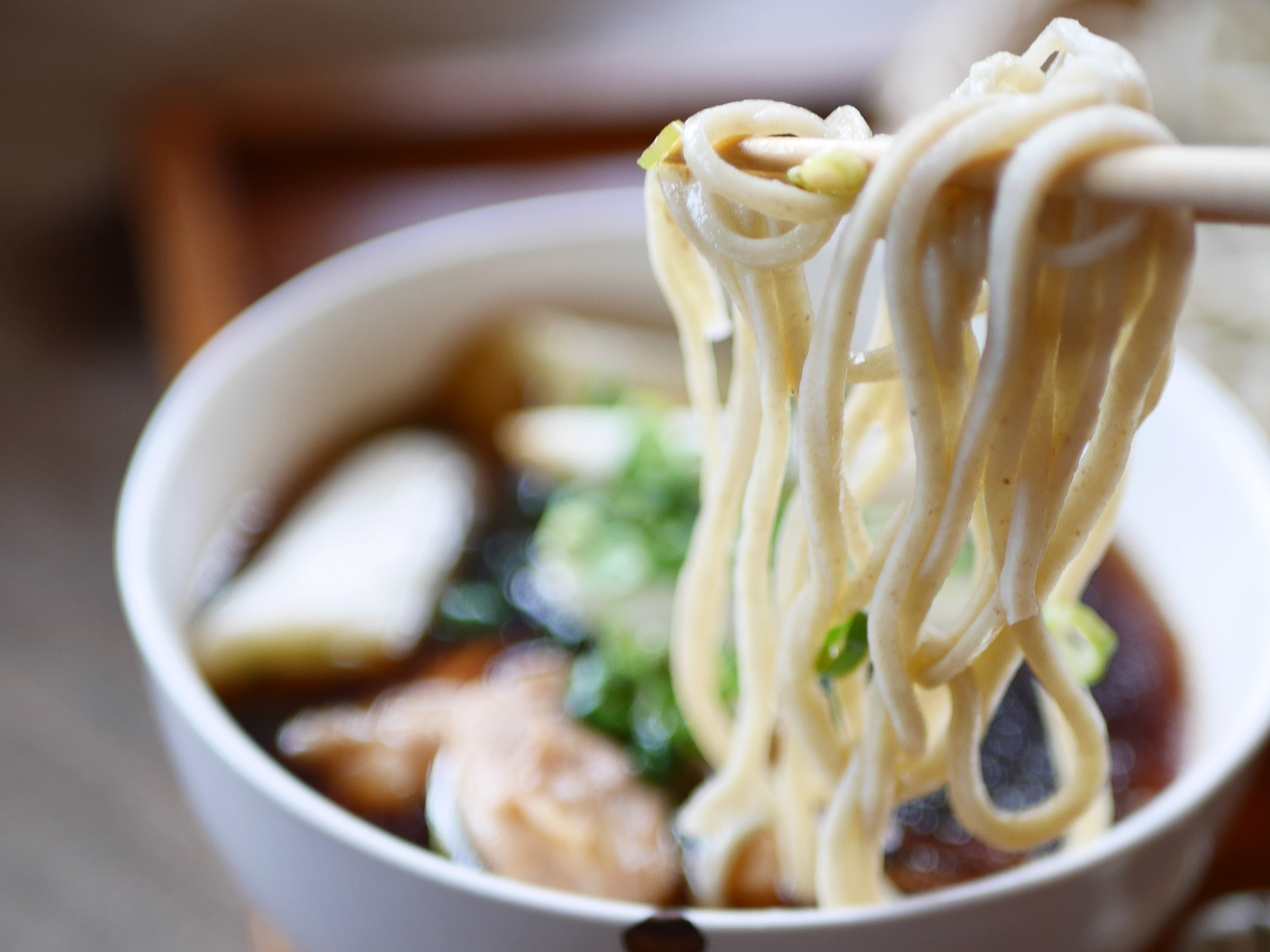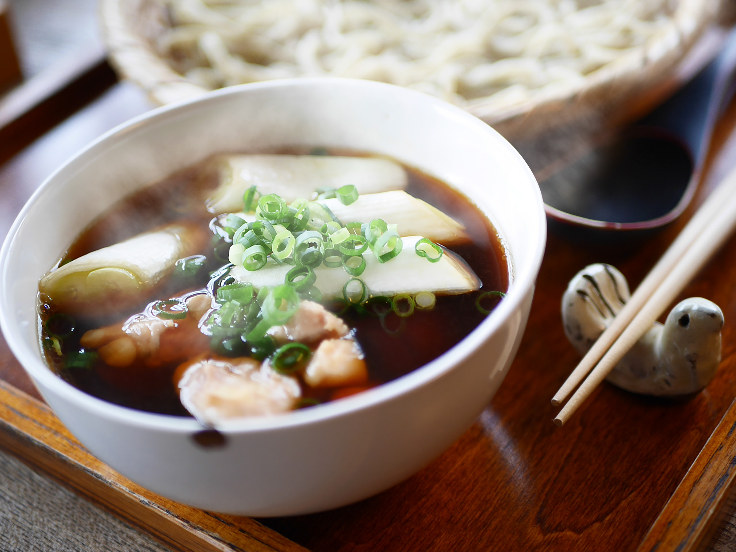 温かいつゆに冷たいそばをくぐらせると、ひと口ごとに旨味と香りが重なり合い、体の芯まで温かさが染み渡ります。しっかりとしたコクの中に、鶏のやさしい甘みと出汁の深みが広がる人気の一品です。