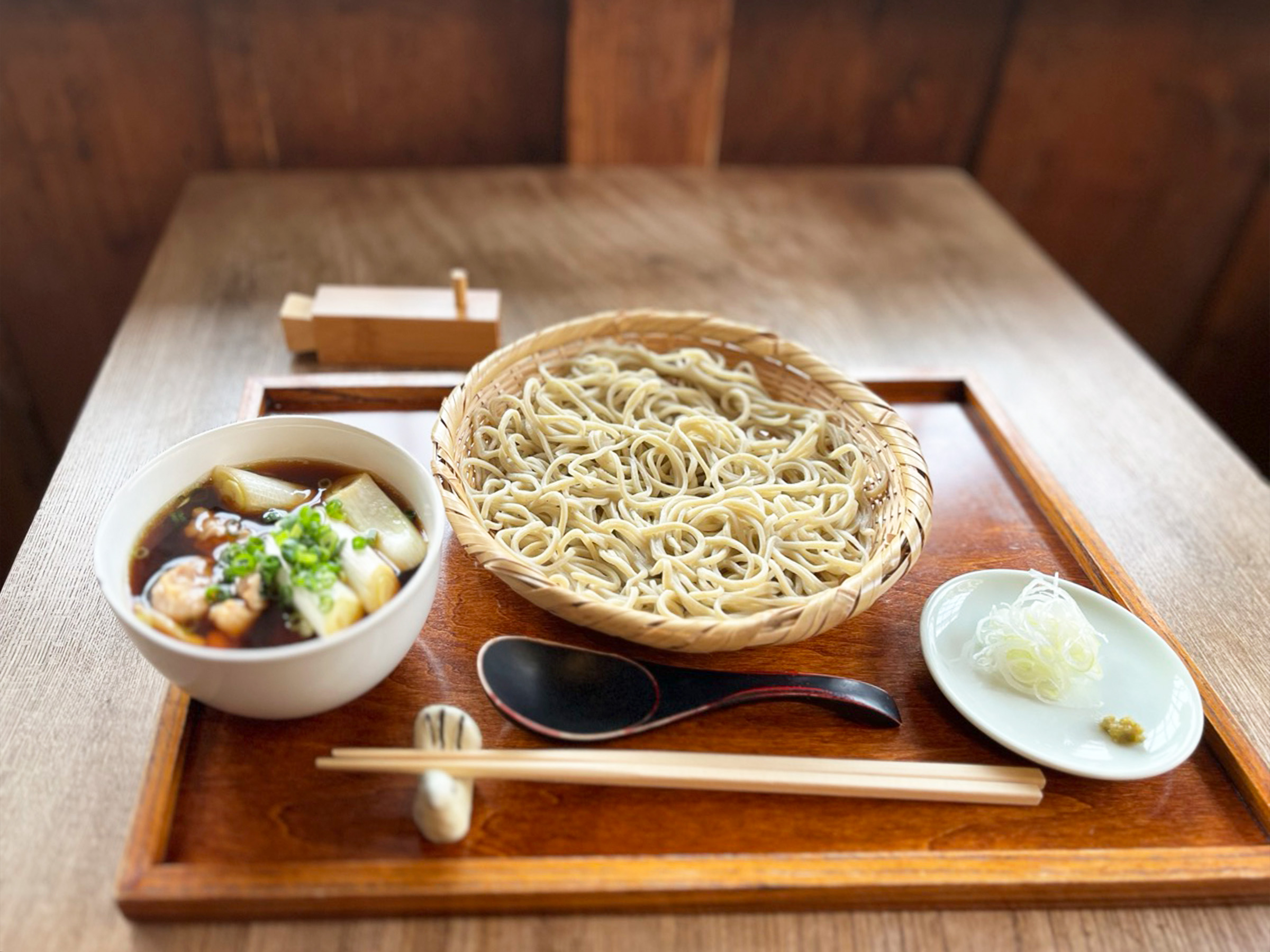 そこに冷たいそばをくぐらせると、ふわりと香りが立ち上ります。もちっとしたそばの弾力と喉越し、温かいつゆの深みが重なり、心までほどけるような美味しさです。