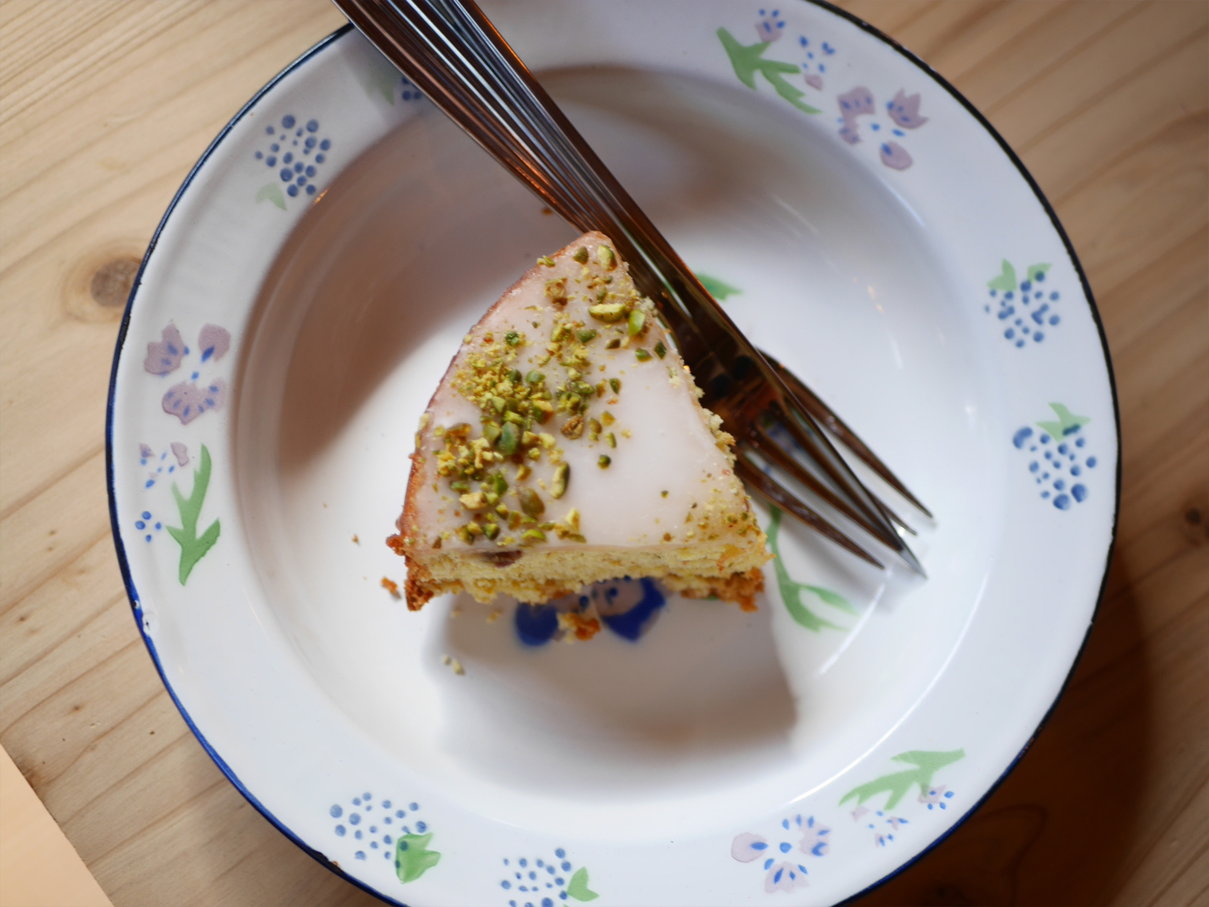 甘酸っぱいレモンの香りとピスタチオの香ばしさが広がる、しっとりとした「ピスタチオレモンケーキ」(650円税込)。ひと口頬ばると、ほのかな酸味とナッツのコクが絶妙で、幸せな余韻が広がります。