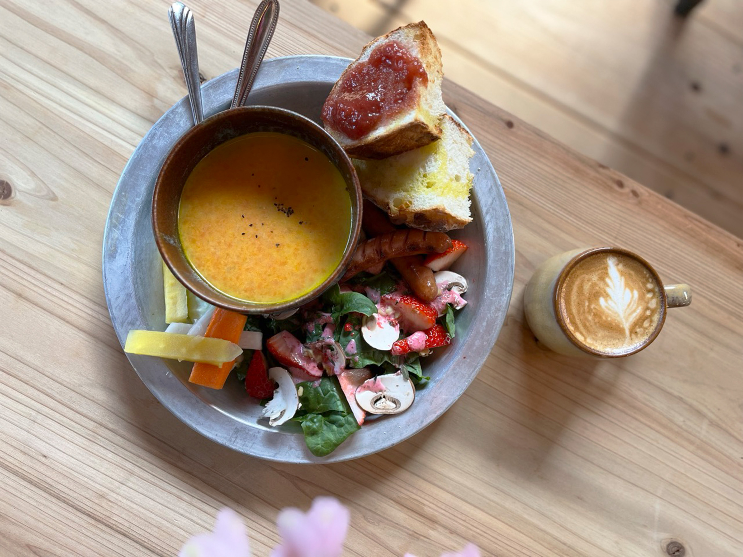 YOSHIDA cafeでは、父の農園「山忠」の新鮮な野菜を使った「フルーツサラダのモーニングセット」(1,100円税込)が看板メニューですが、三浦半島の旬の素材を活かした手作りスイーツも好評です。