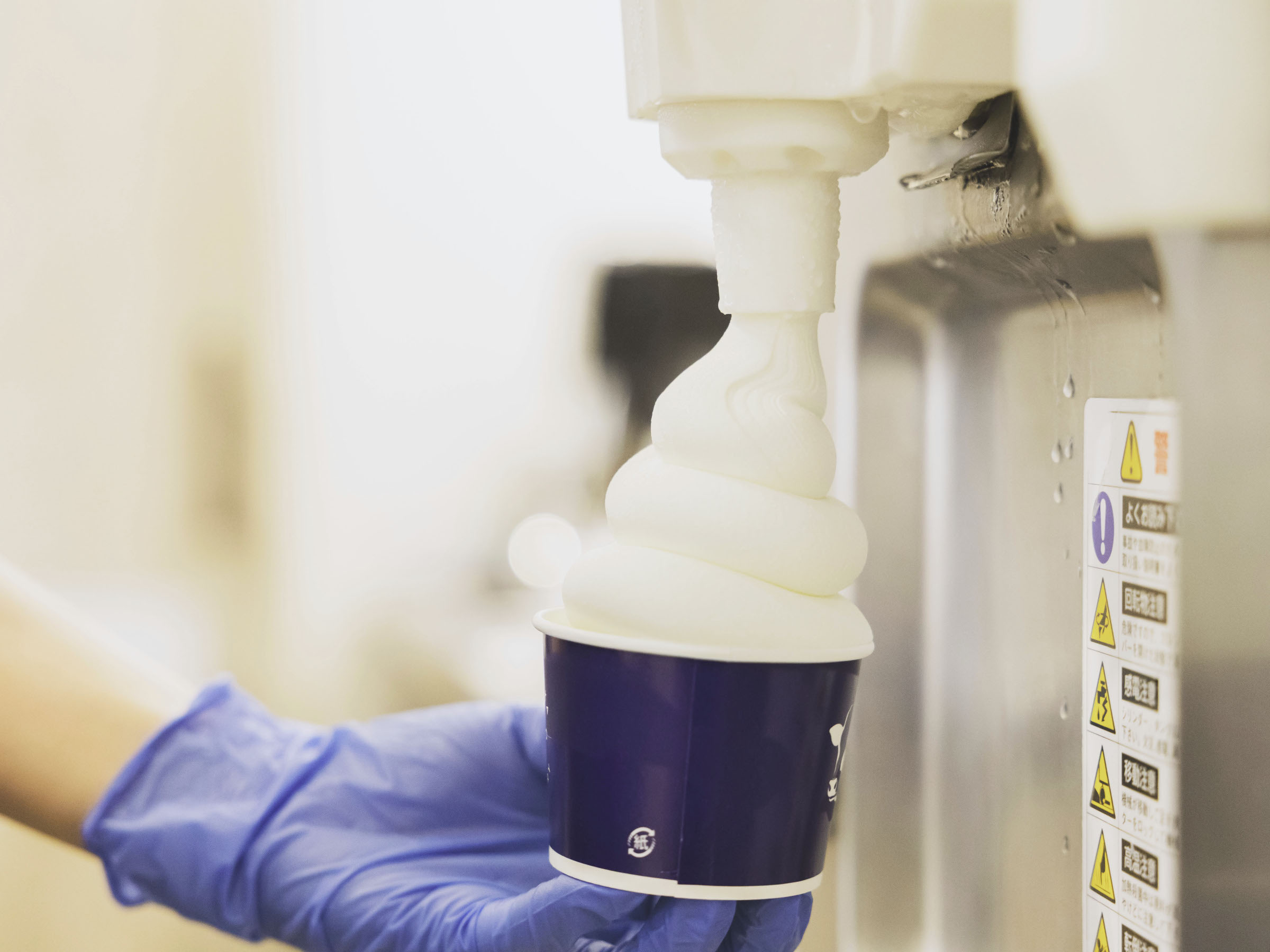 「ソフトクリームを出す機械の形状、巻いたときの大きさやフォルムが違うと、空気を含む量が変わります。すると同じ原料でも、絶妙に硬さや味わいに違いがでるので、ぜひ食べ比べてみてください」