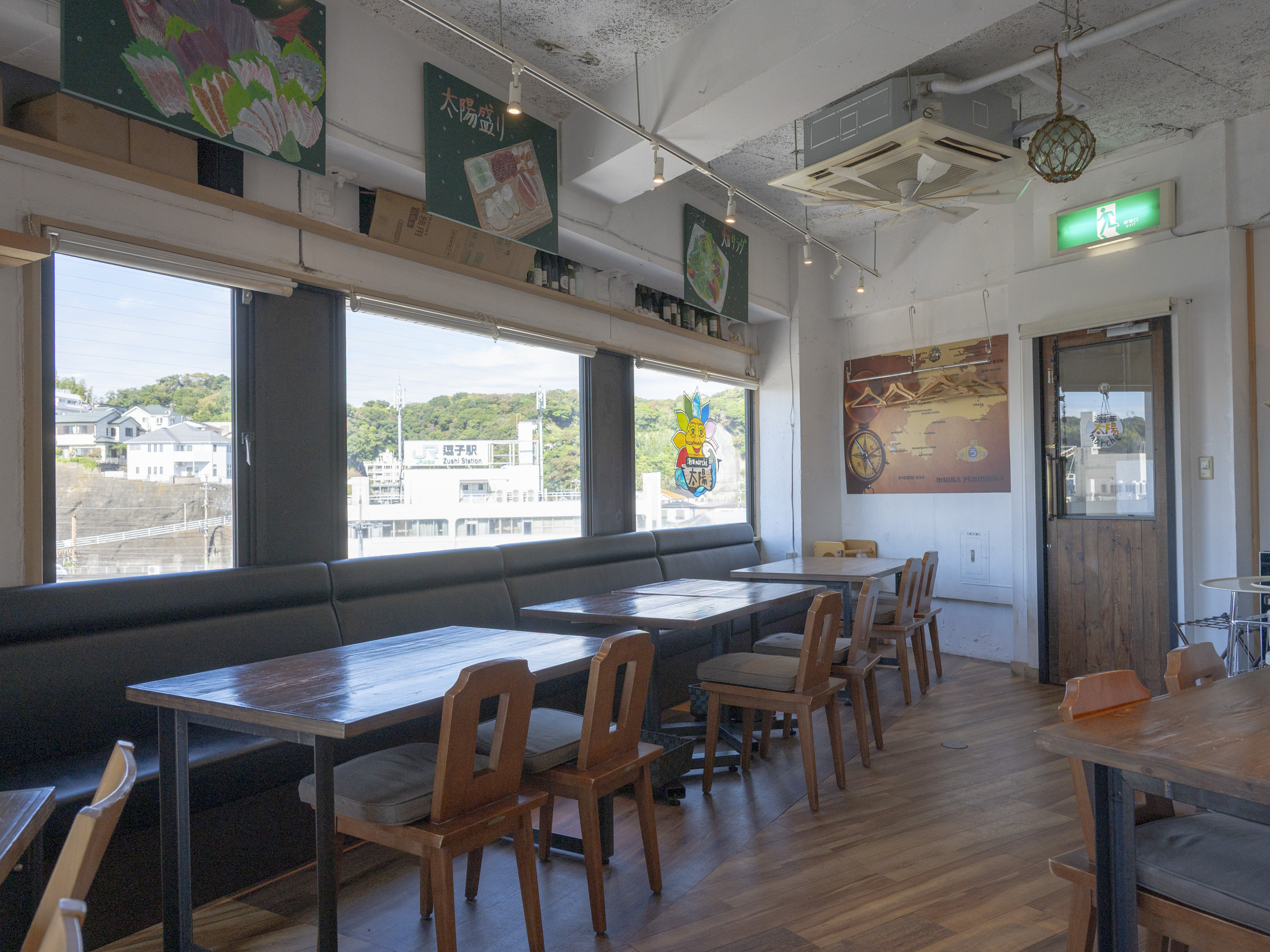 逗子駅徒歩1分。5階から逗子の街と海などの眺望を楽しめる地産地消の居酒屋風レストラン「海畑マルシェ太陽」。