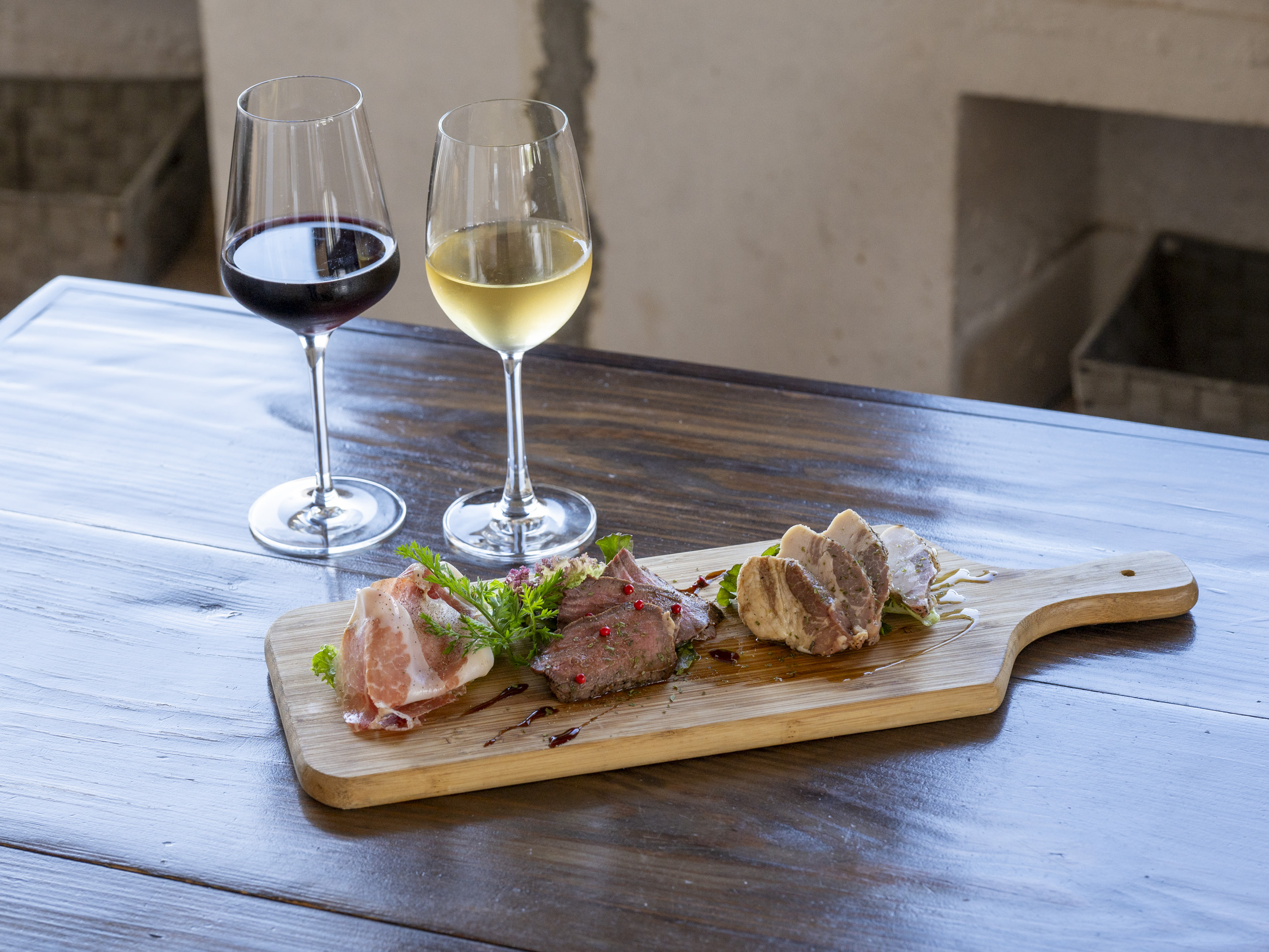 生ハムは塩味がしっかりしていてワインと一緒に味わいたい風味です。スモークベーコンはしっとりとした味わい。ローストビーフは、赤身のさわやかさと歯ごたえのある噛み心地で噛むほどに旨味が出てきます。