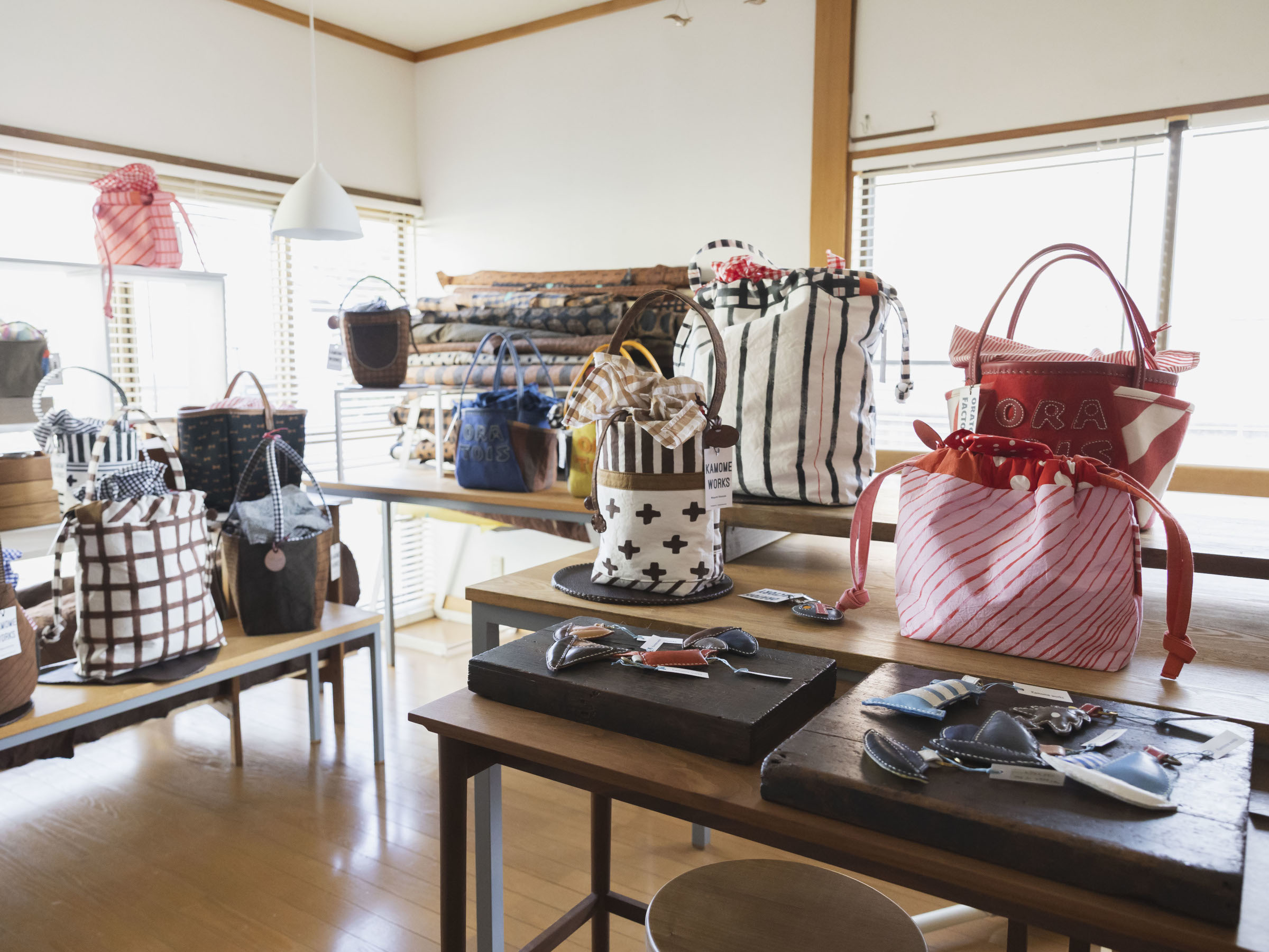 三浦半島・秋谷にアトリエを構えるバッグブランド「kamome works」。デザイナー・塩崎めぐみさんはバッグづくりと並行して、「幼い頃から夢中になっていた」という布を自ら加工し、オリジナル・テキスタイルも制作しています。