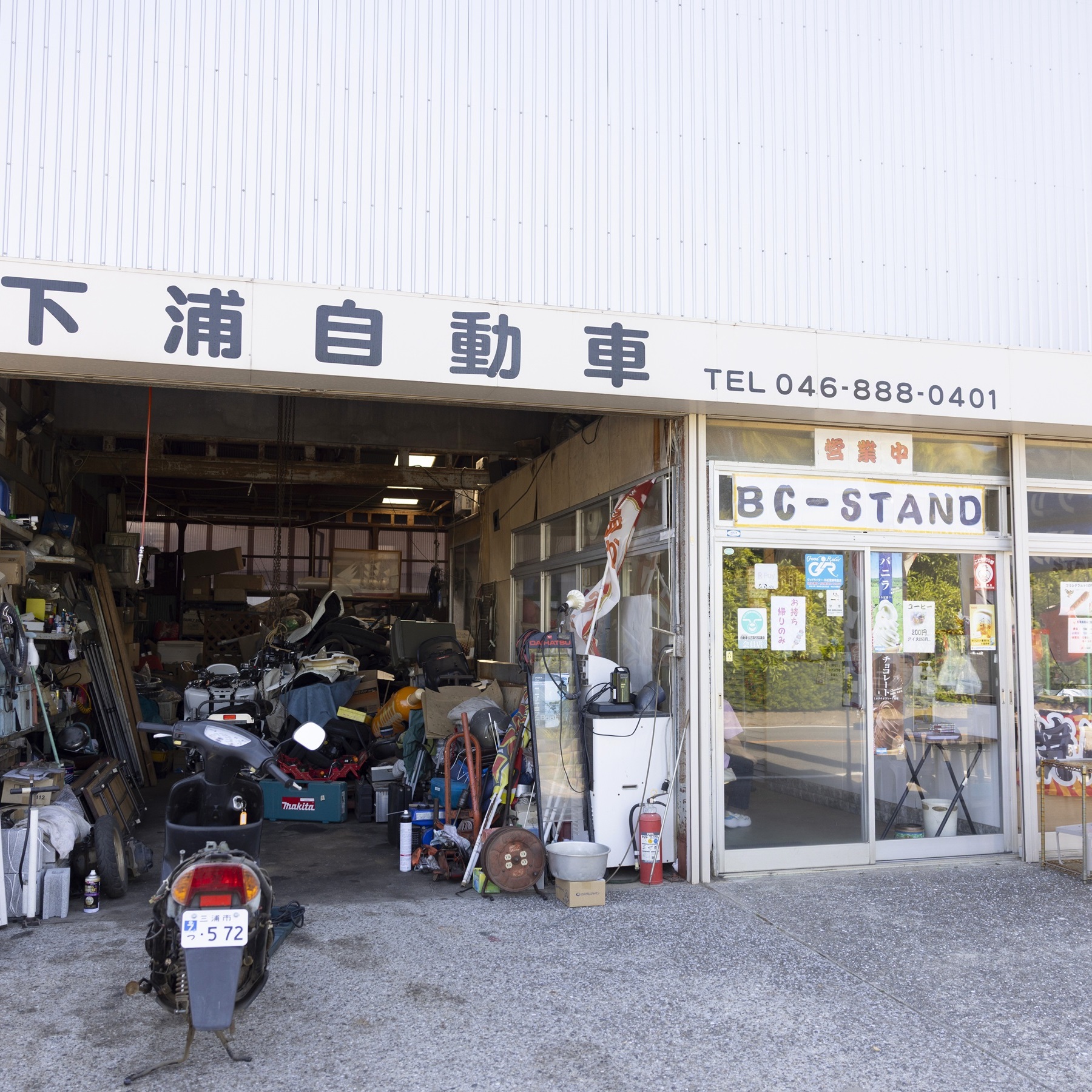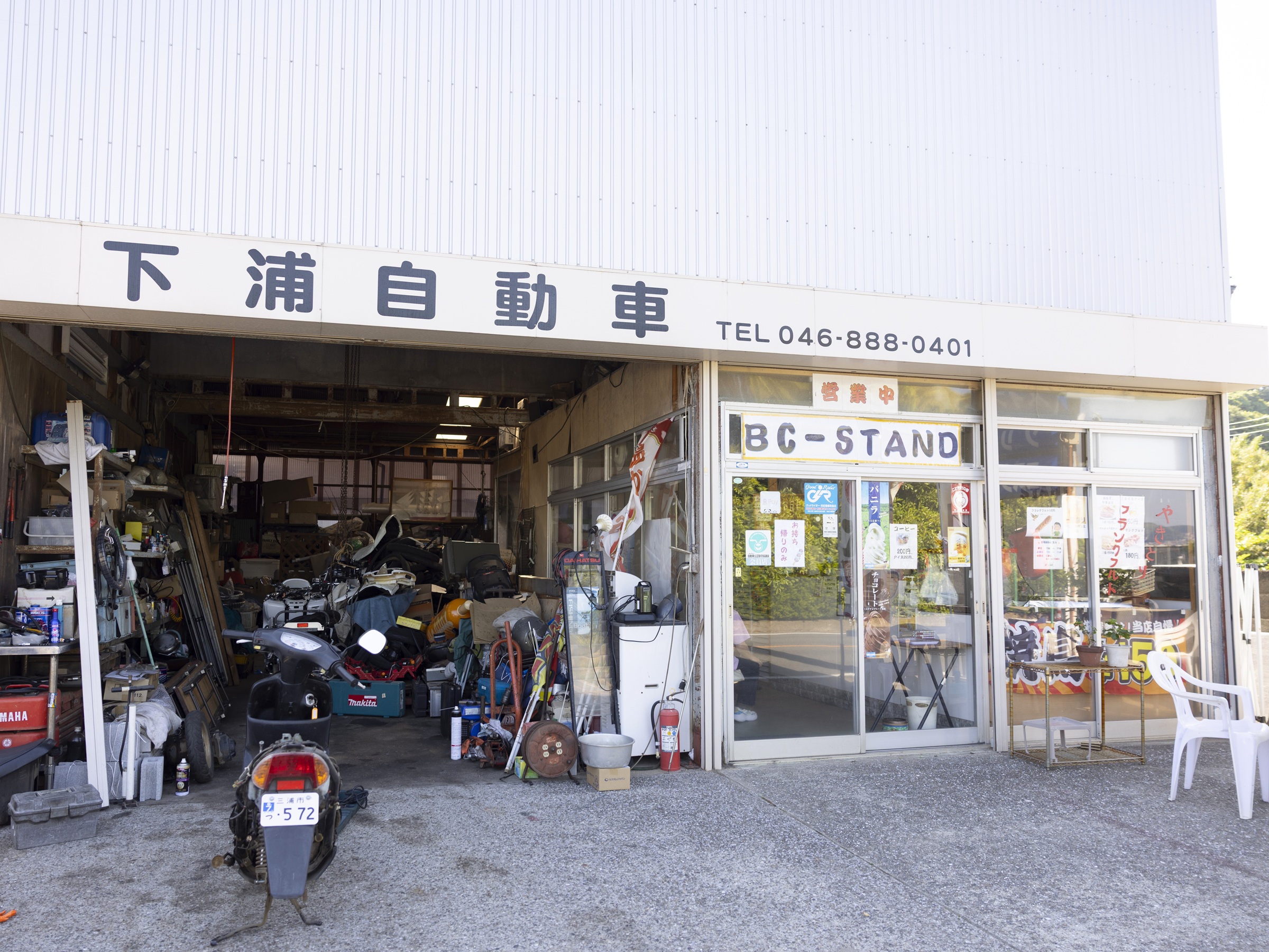 下浦の住宅地にある自動車整備工場「下浦自動車」はかつて大型バイクの車検や整備を請け負っていました。しかし時代が変わり、2023年よりテイクアウト専門の焼き鳥屋「BC-STAND」を併設して軽食を提供するように。