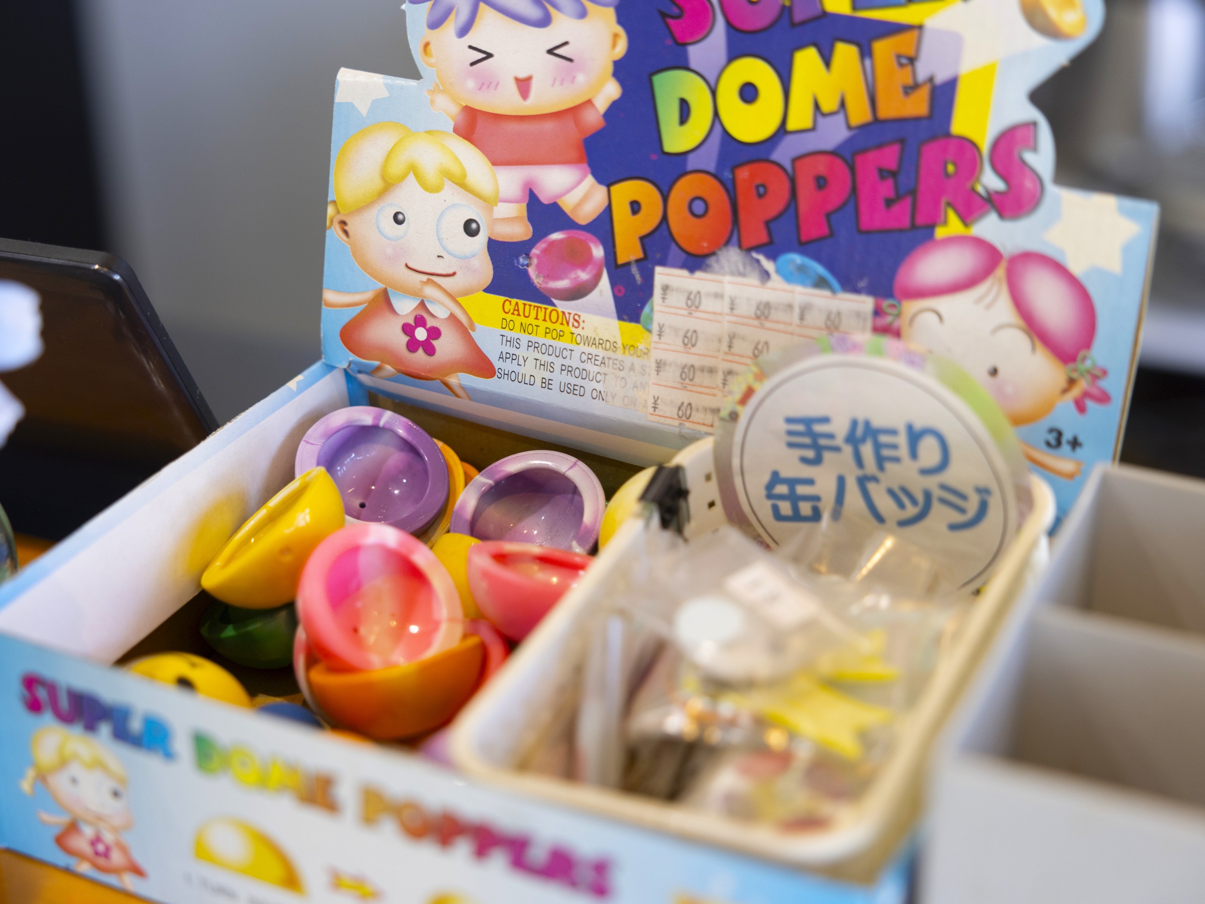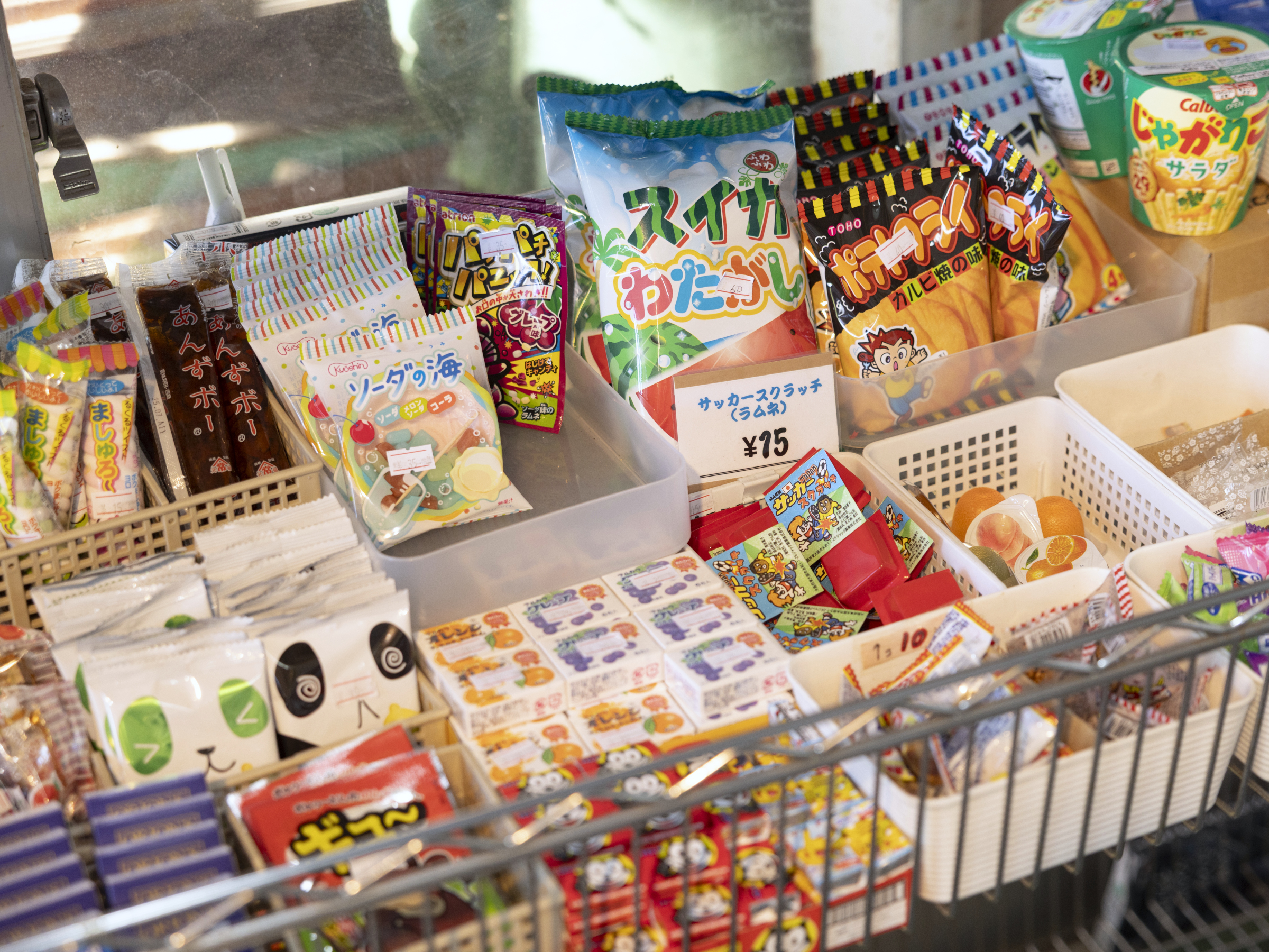 他にもお店の一角には駄菓子や当たりくじ、型抜きなども置かれ、学校が終われば地域の子どもたちが遊びに来てお気に入りの駄菓子を買っていきます。