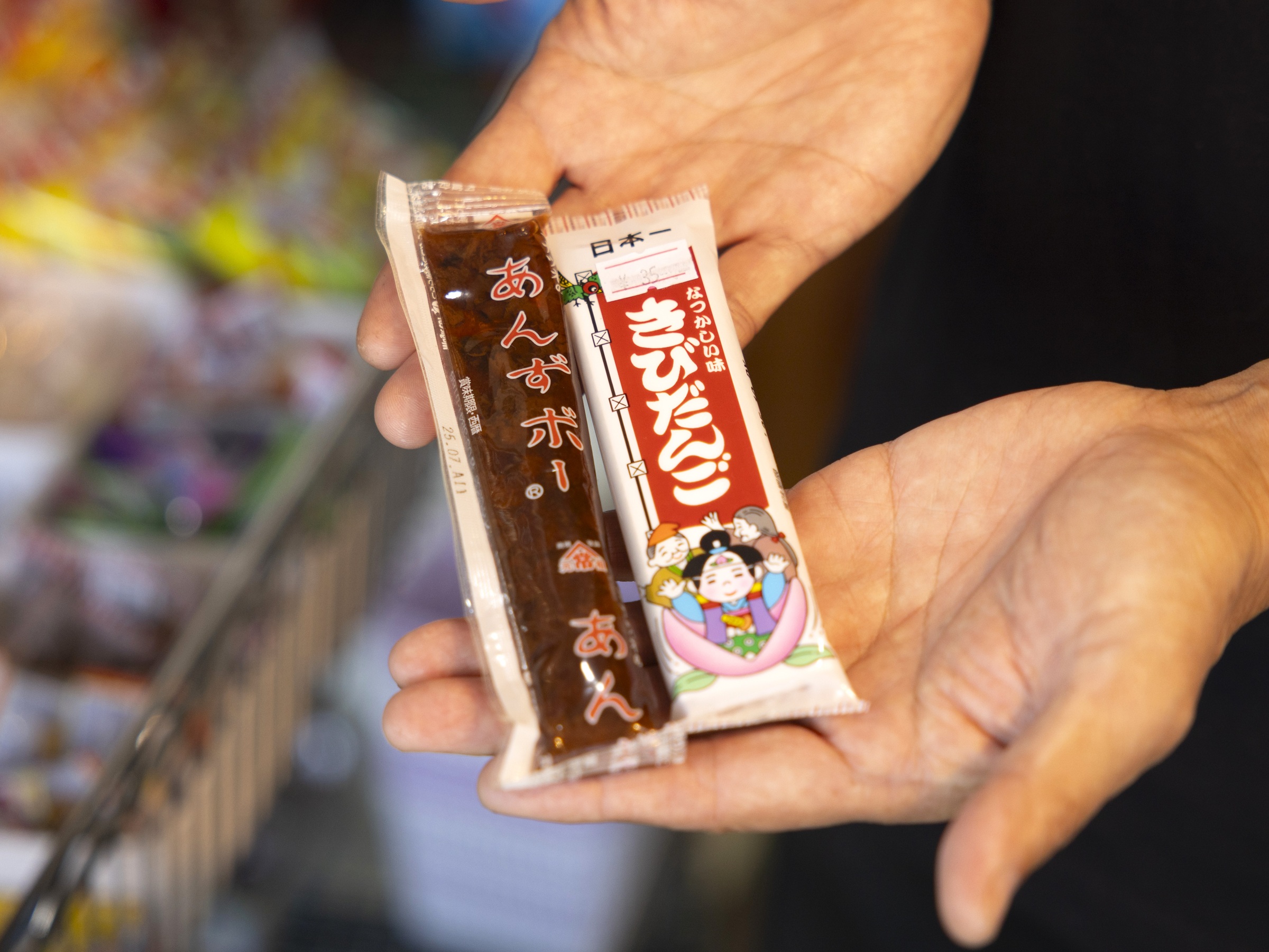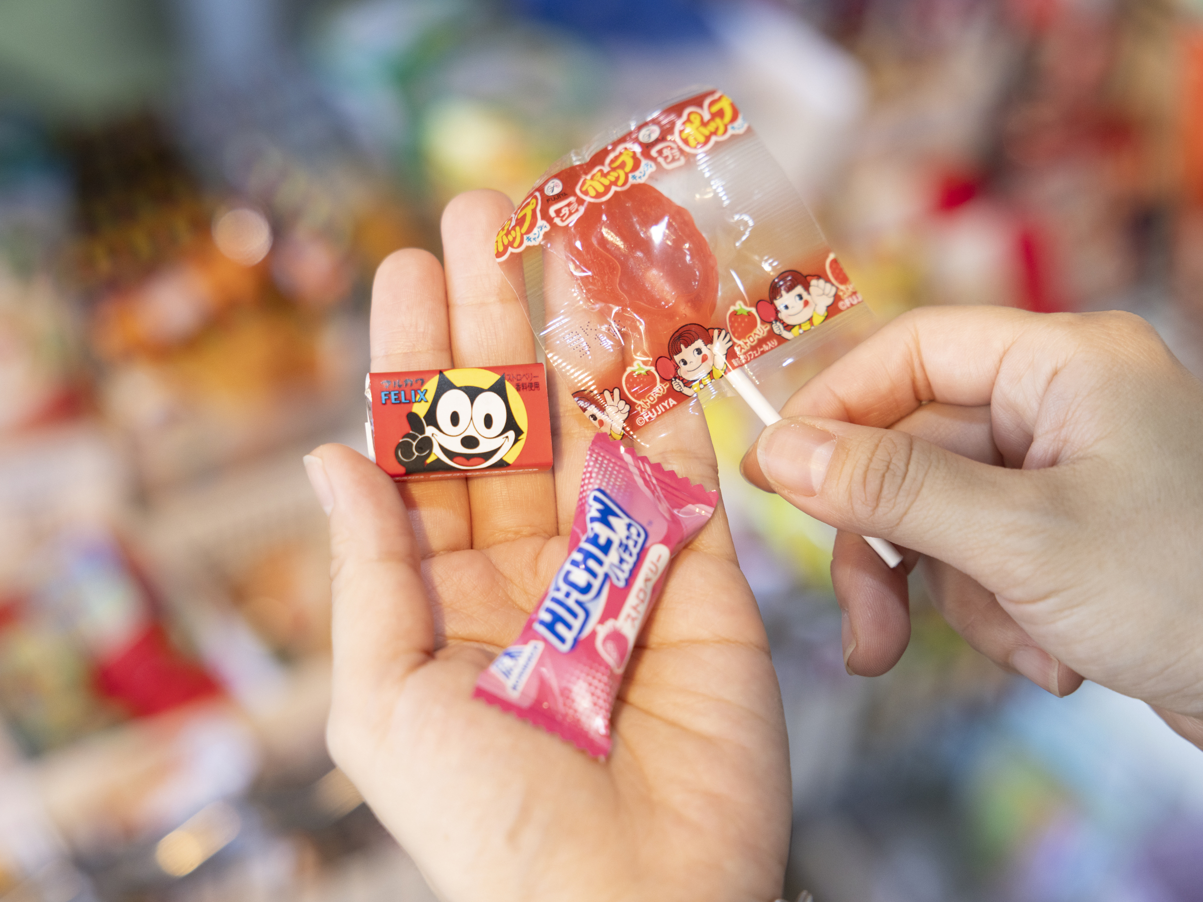 「一番人気はフェリックスガム。私たちが子どもの頃からある商品なので、今の子どもたちが手に取っているのを見ると懐かしくなりますよね。きびだんごやあんずぼーなど昔からのラインナップも現役です」