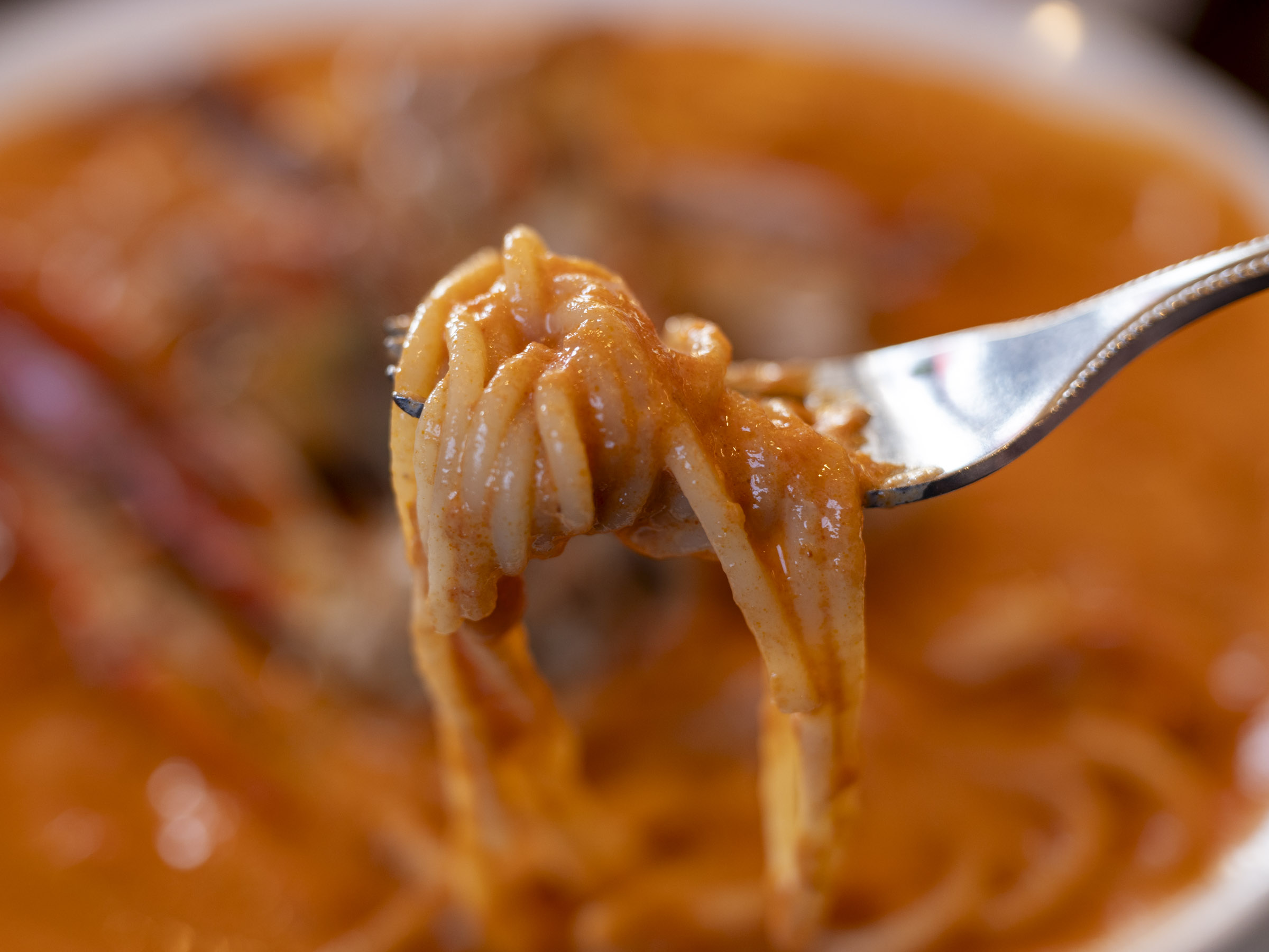 大人気メニューの「渡り蟹のトマトクリームスパゲティ」(1,620円)をオーダーしてみました。