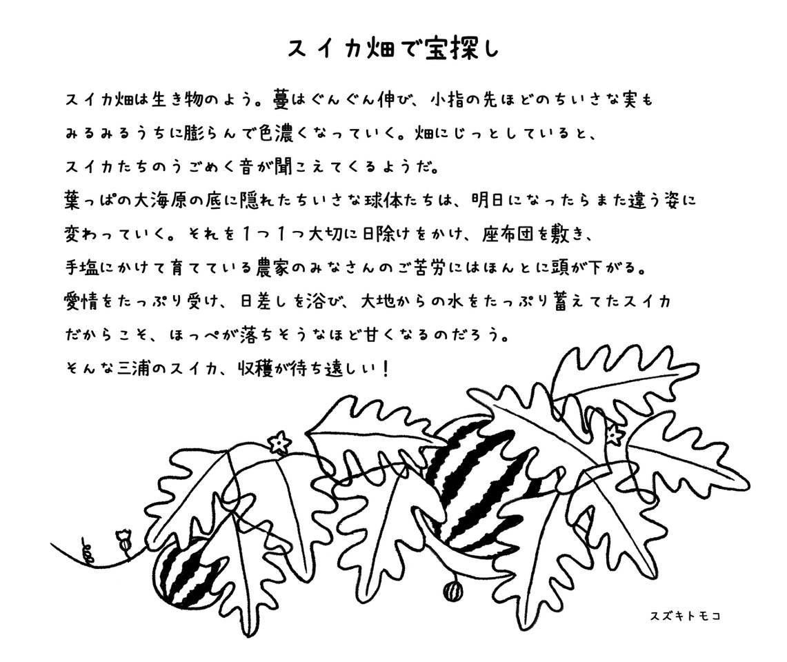 『三浦スイカの美味しい秘密』をテーマに、6月は、三浦市内に広大な畑を持つ森勘農園さんでスイカの交配(人工授粉)の様子を取材しました。