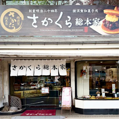北久里浜駅から徒歩3分、静かに暖簾を掲げるのが、創業明治24年(1891年)の老舗和菓子店「さかくら総本家」です。その歩みは、東京・神田岩本町で菓子材料や駄菓子を扱う商いから始まりました。やがて、軍港の整備とともに急速に発展していく横須賀の地に可能性を見出し、坂倉家は店を移転。海軍の街として賑わいを見せていた横須賀で、「坂倉」の屋号を掲げ、本格的に和菓子屋としての道を歩み始めます。