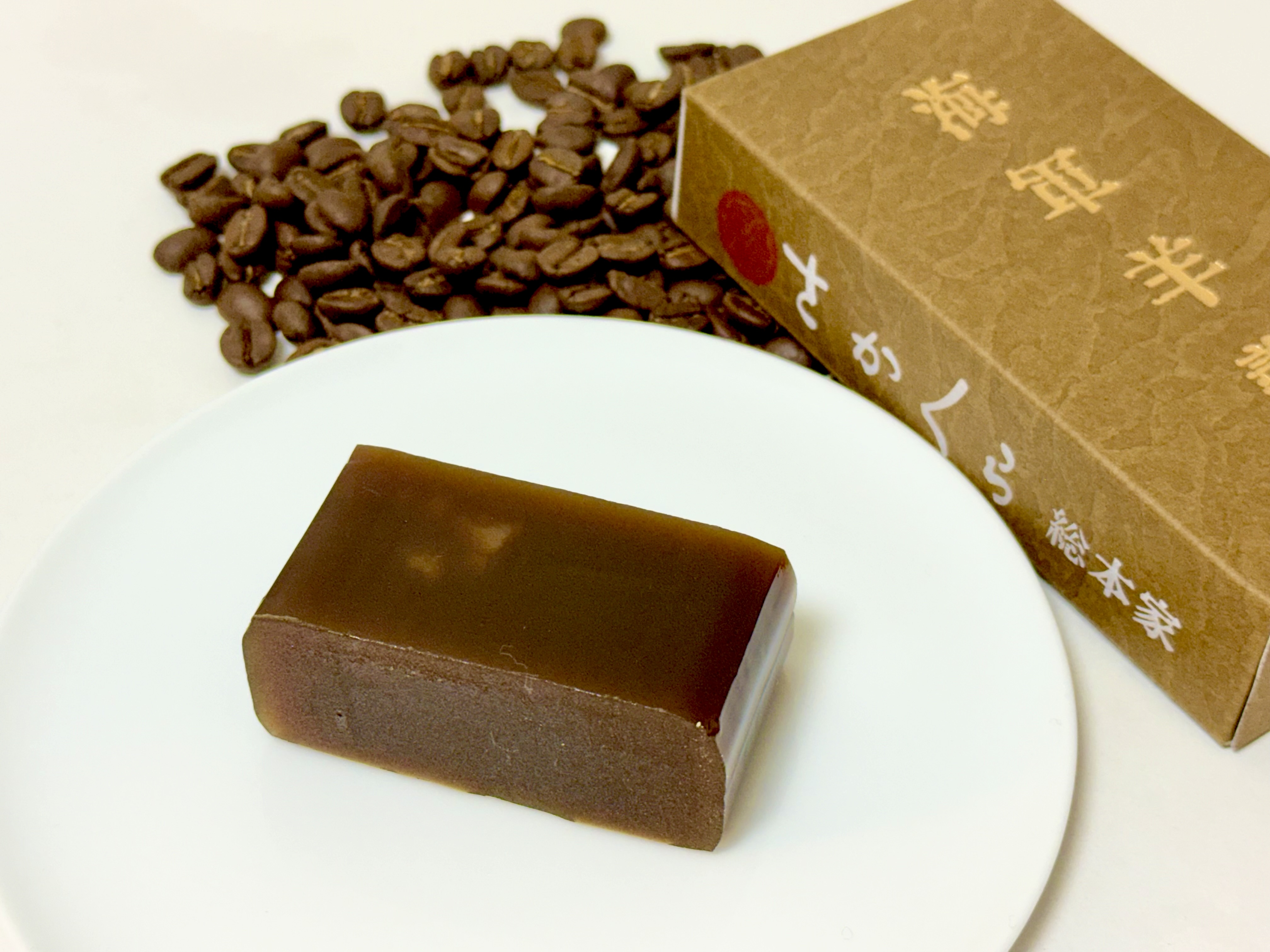 珈琲羊羹は、海軍と深い縁を持つ珈琲から着想を得た一本です。和菓子らしい端正な甘さの中に、ふと差し込む珈琲の華やかな香りを感じます。主張しすぎることなく、存在感があり食後に静かな余韻を残します。日本茶の穏やかな旨みとも、コーヒーの香ばしさとも調和する、懐の深い逸品です。さらに、抹茶羊羹は、白あんと宇治抹茶を合わせた、現代の感性を取り入れた一本も人気です。