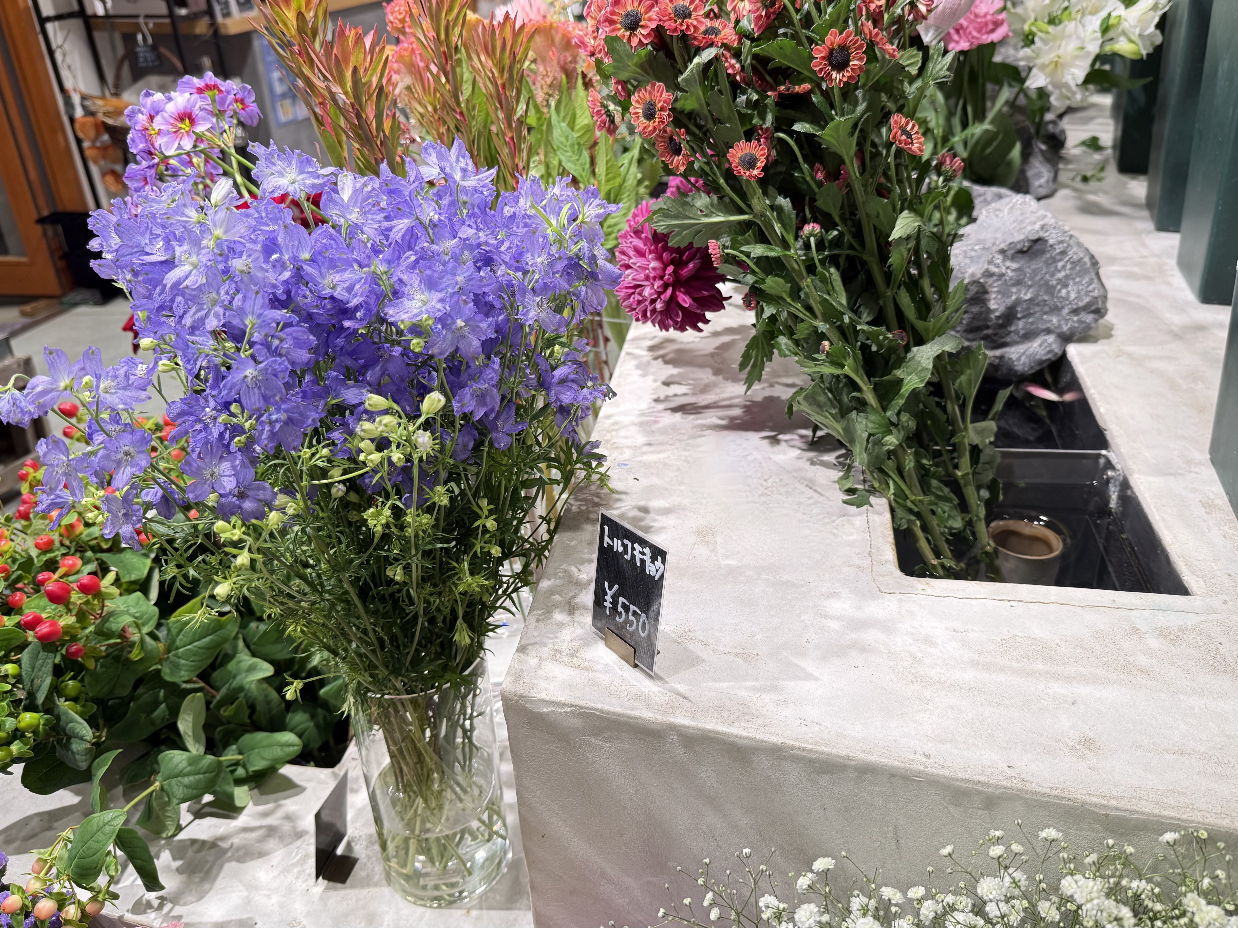 特別な日でなくても、一日の終わりに自分のために選ぶ一輪は、心を整えてくれる存在です。 店内には親しみやすい定番の花から、少し珍しい品種まで幅広く揃い、1本からでも気軽に購入することができます。さらに、店頭に設置した花の自動販売機や、Uber Eatsでの配達など、暮らしに寄り添う取り組みも好評です。