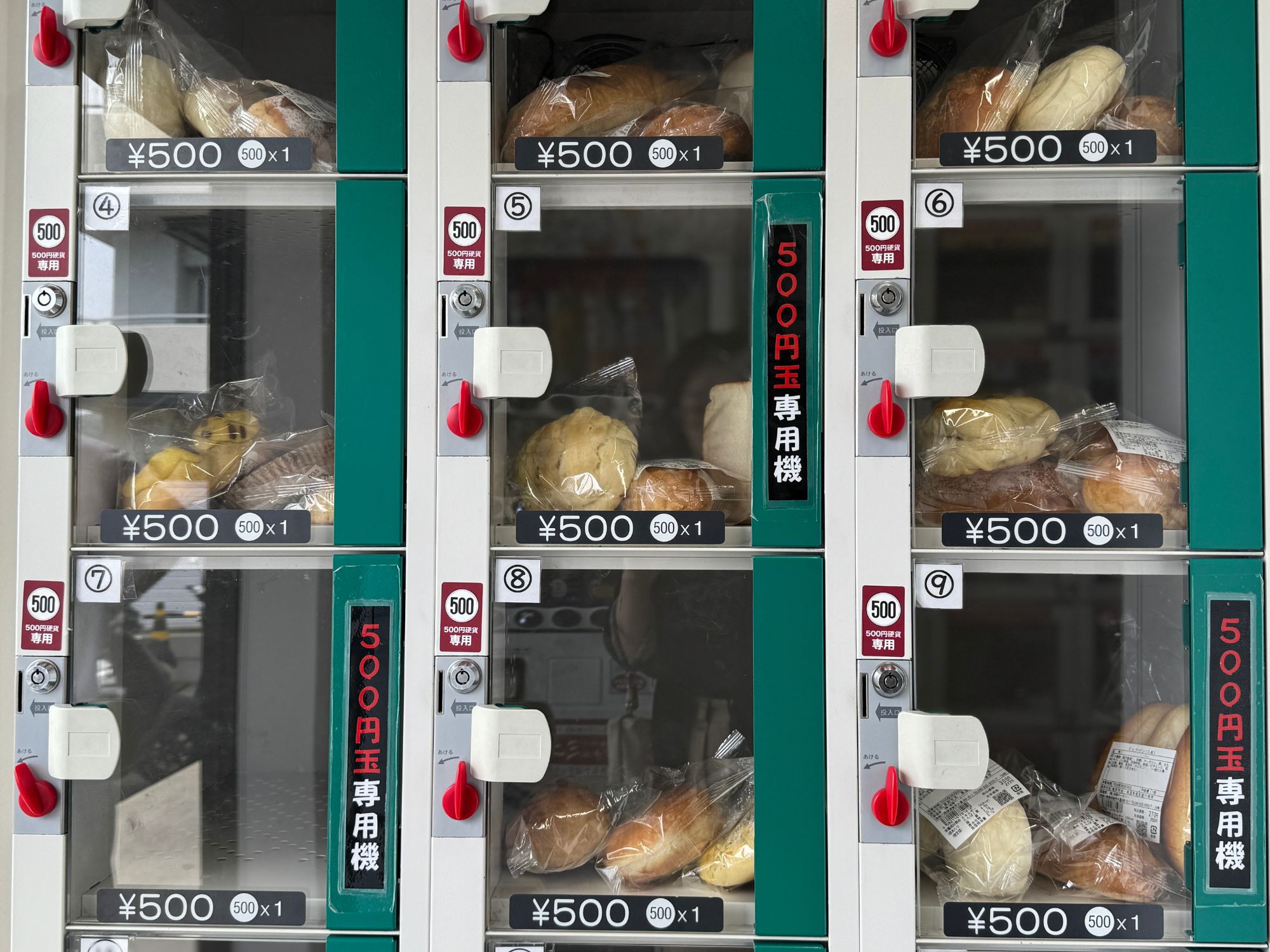 法塔ベーカリーには自動販売機もあります。ここでは店頭とは異なり、法塔ベーカリーが主軸として販売している袋パンを購入できます。