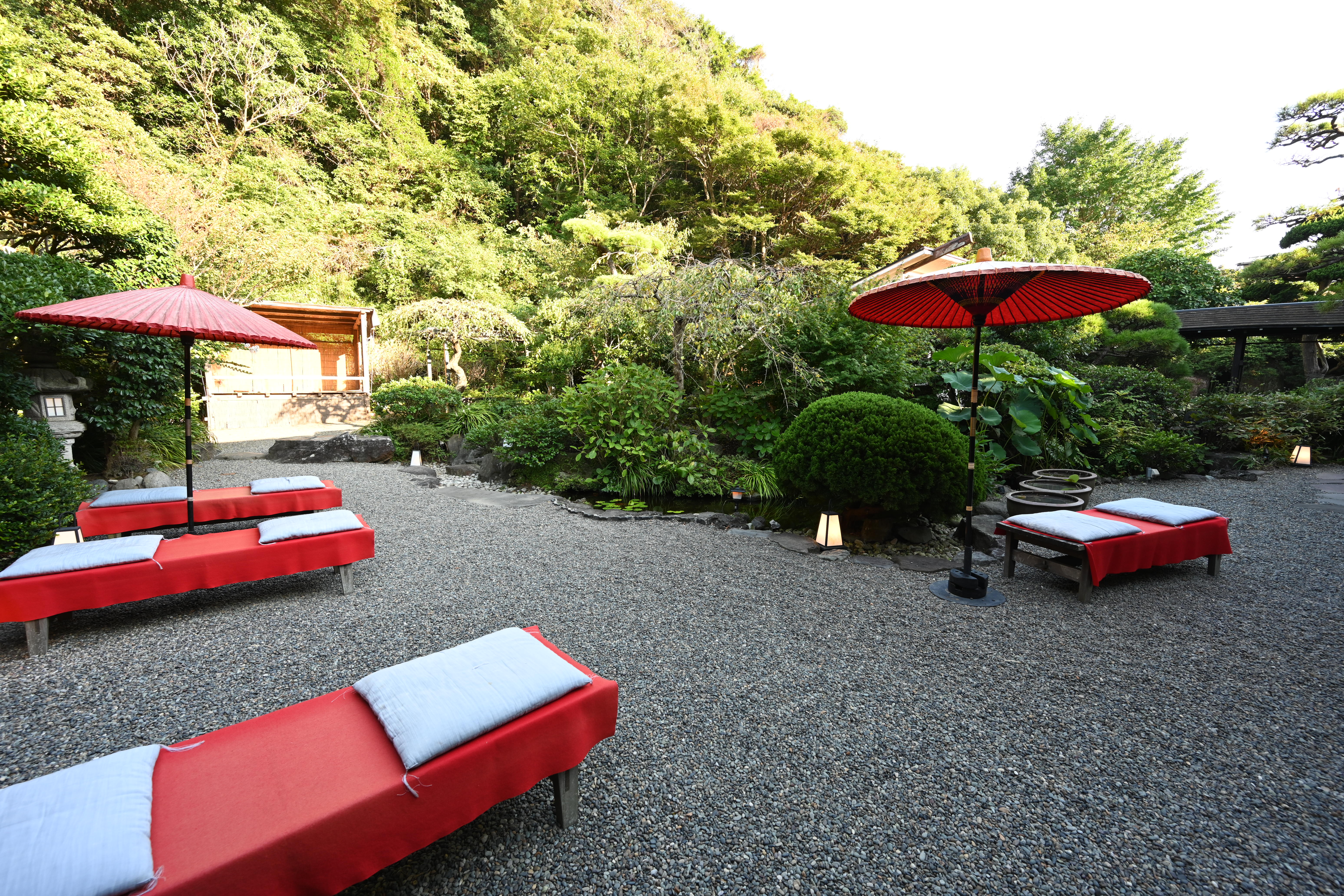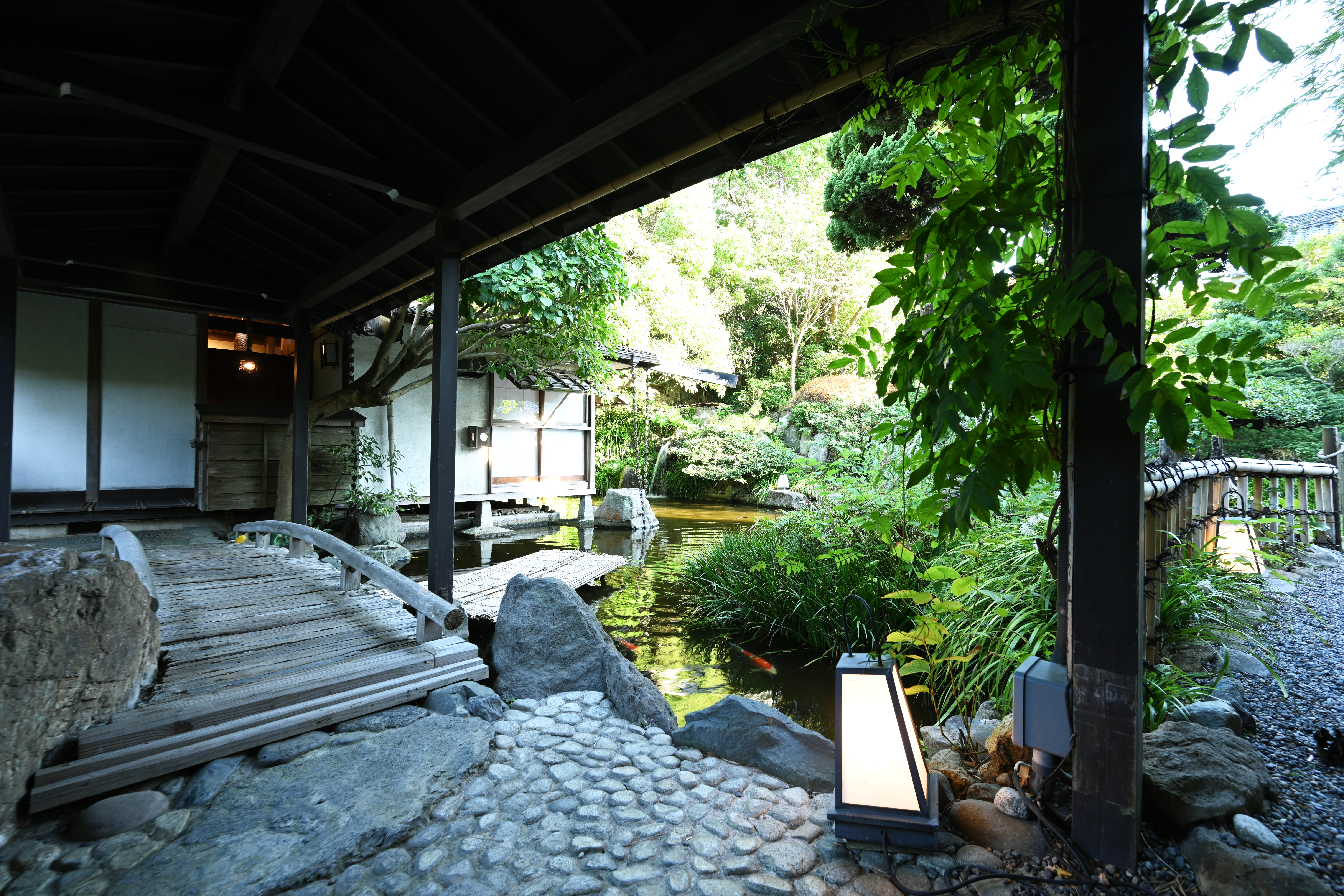 約1000坪の広大な敷地を誇る「日影茶屋」。客席の外に広がる美しい日本庭園もお店の“顔”で、食事の前後に自由に散策できます。